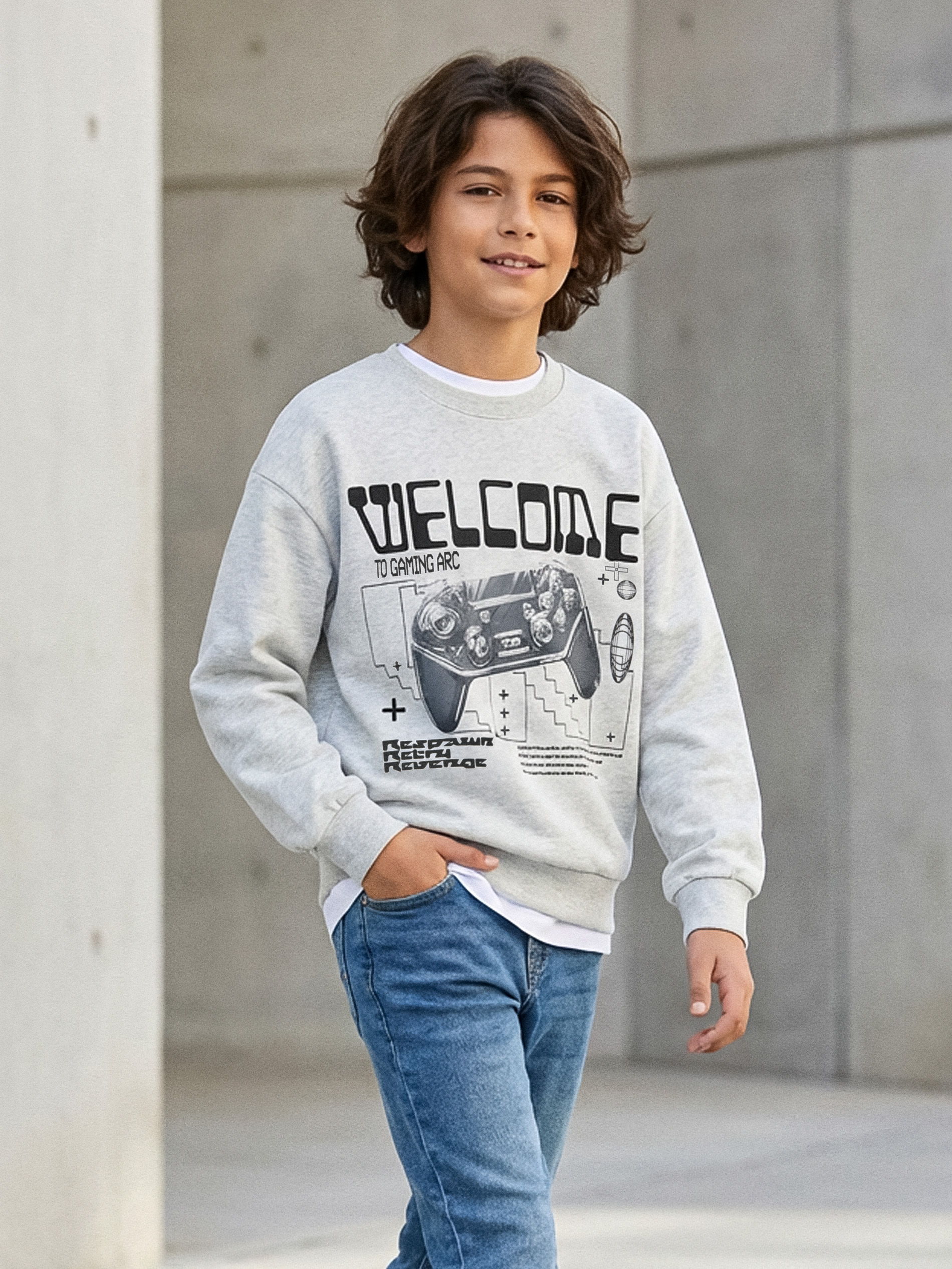 Sinsay - Hanorac crewneck cu imprimeu gaming - gri deschis