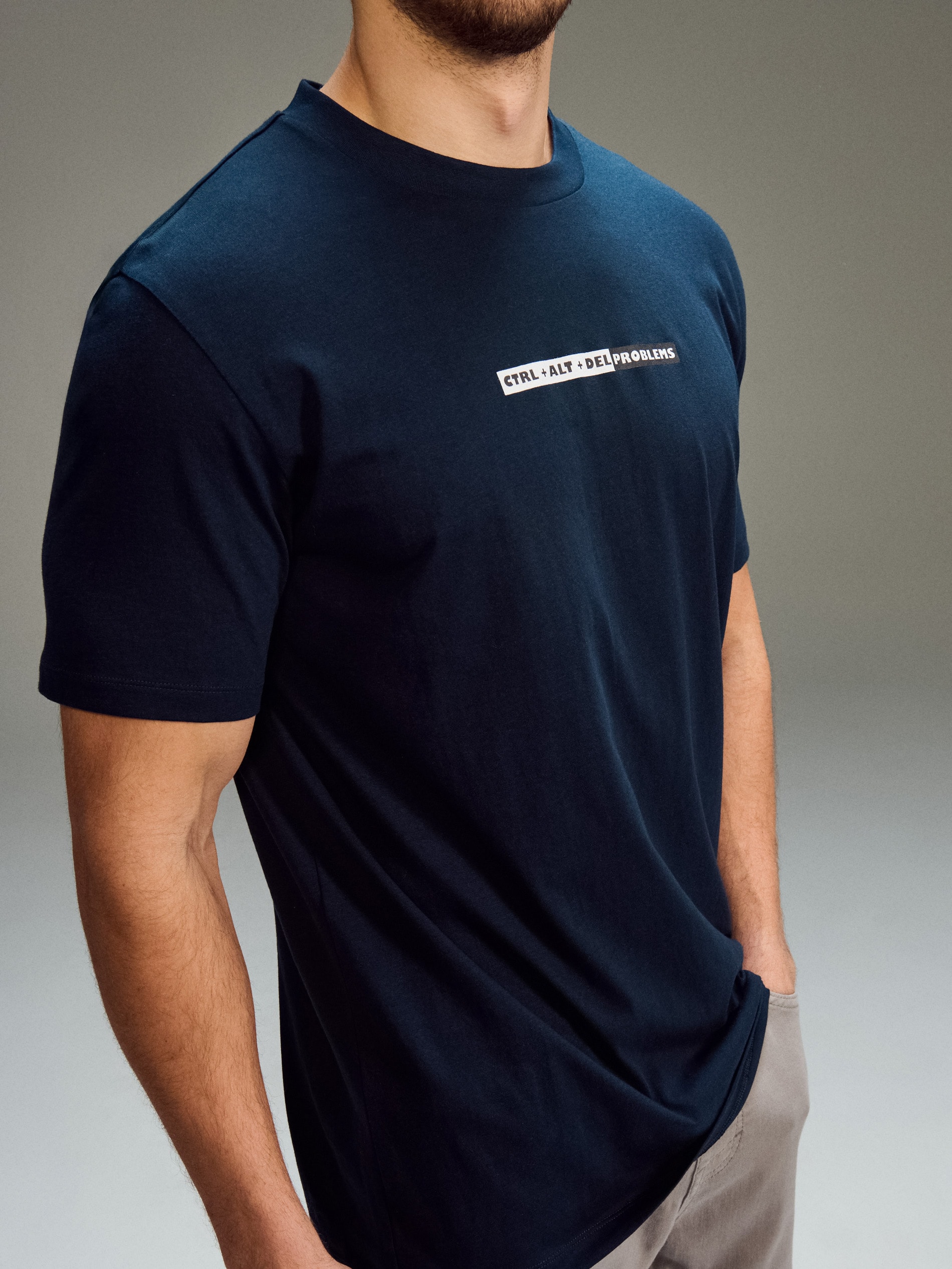 Sinsay - Tricou din bumbac cu inscripție - bleumarin -