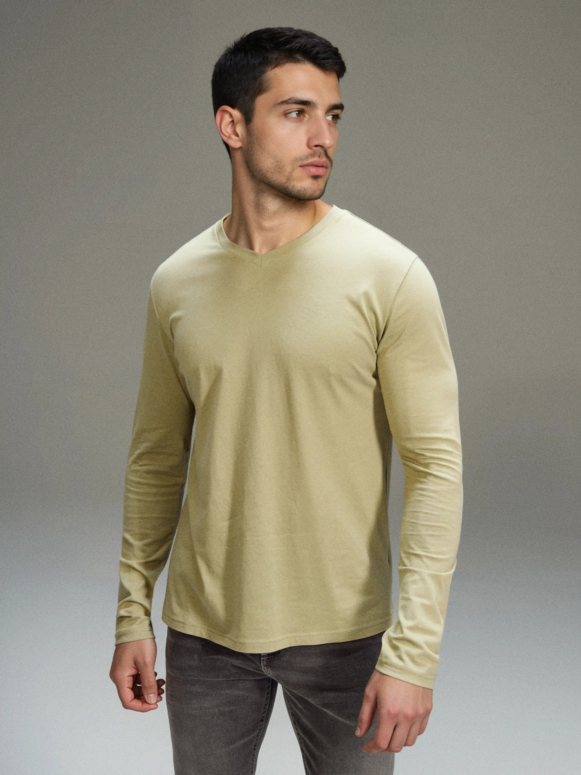 Sinsay - Tricou din bumbac cu mânecă lungă și decolteu în V - verde-deschis