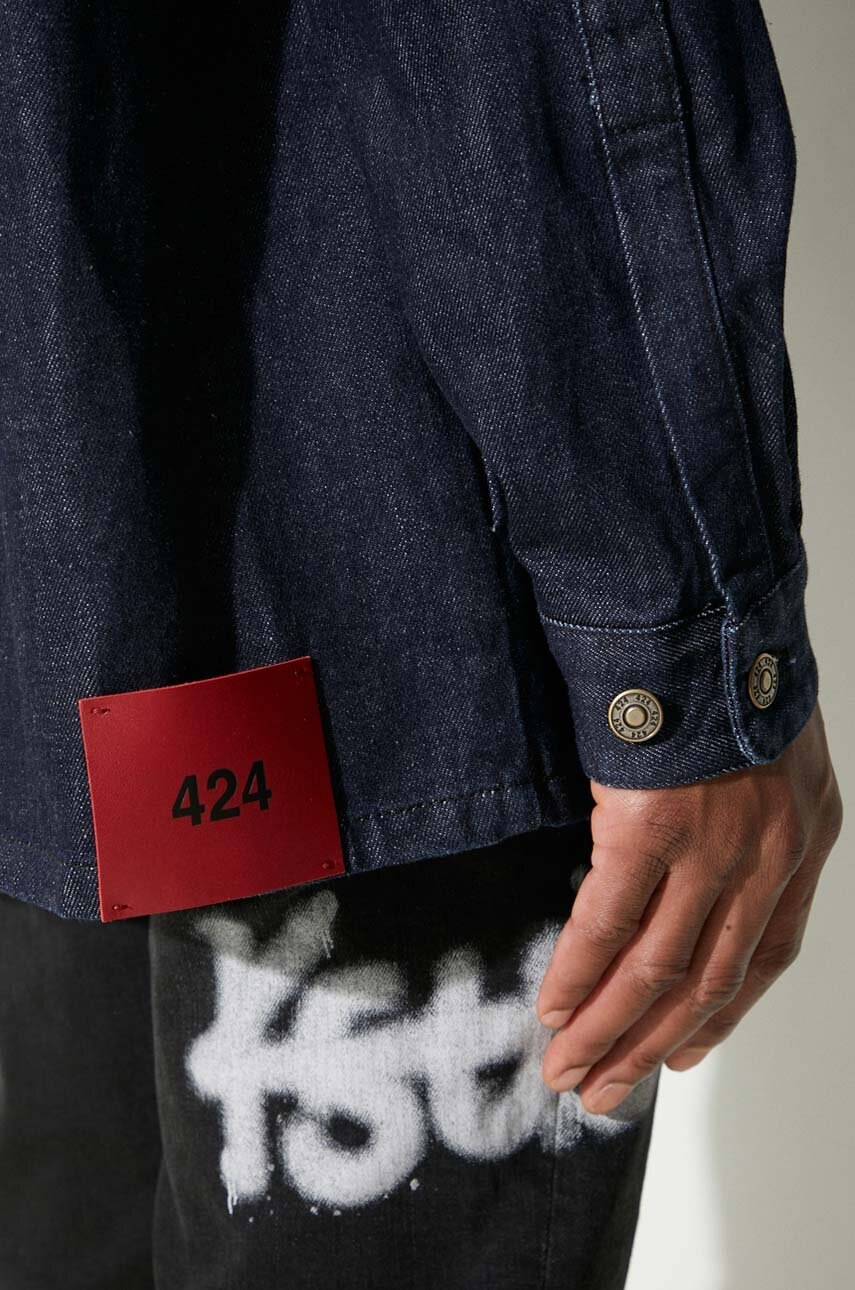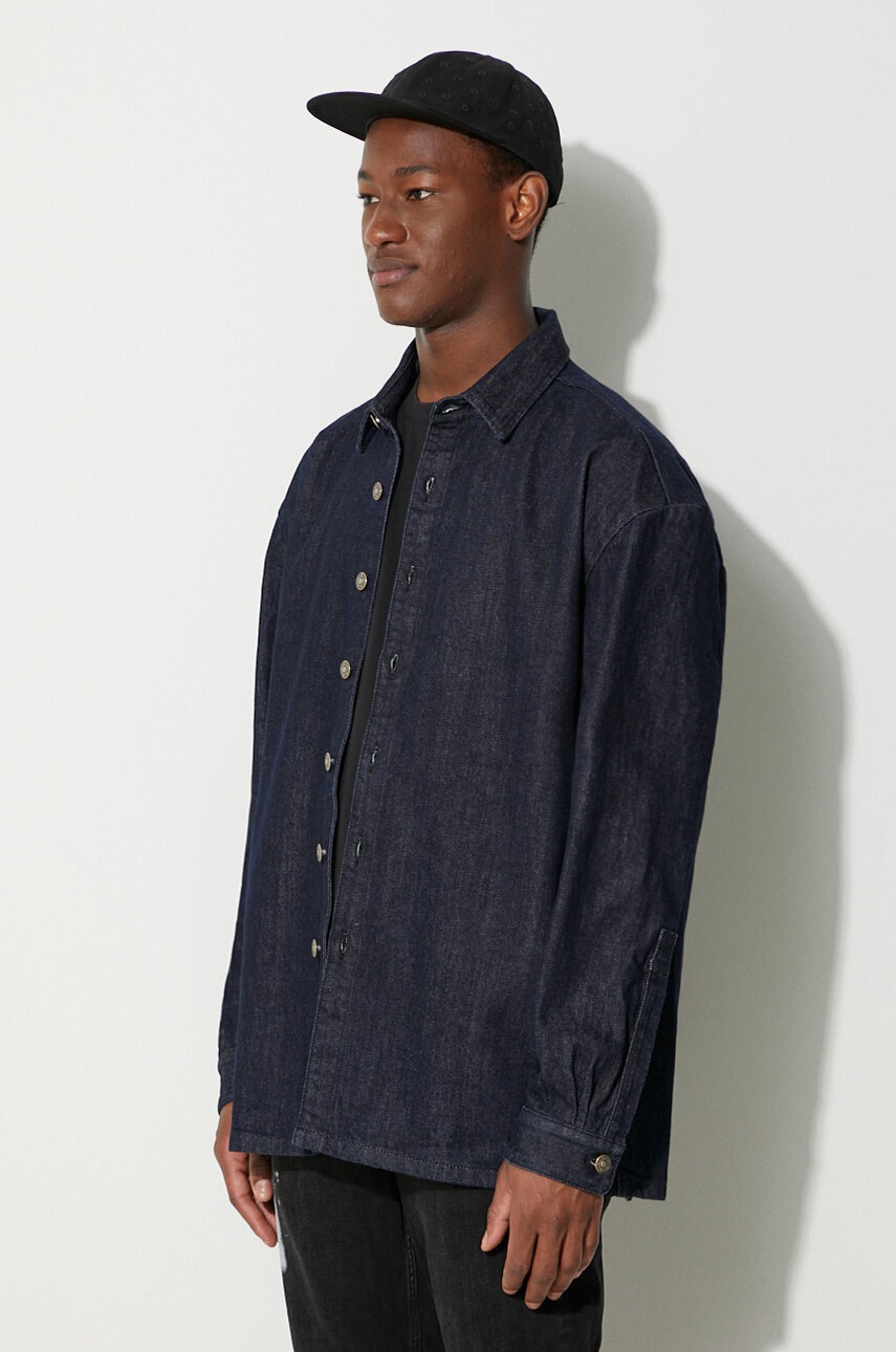 424 Cămașă denim bărbați bleumarin, guler Kent, croială oversize, manșete cu nasturi, două buzunare, mărime M