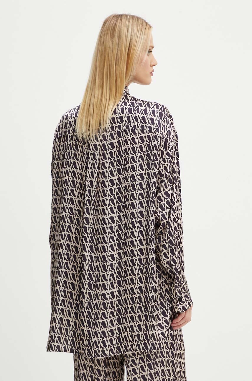 AERON camasa femei, culoarea maro, cu guler clasic, relaxed, PFSH162519