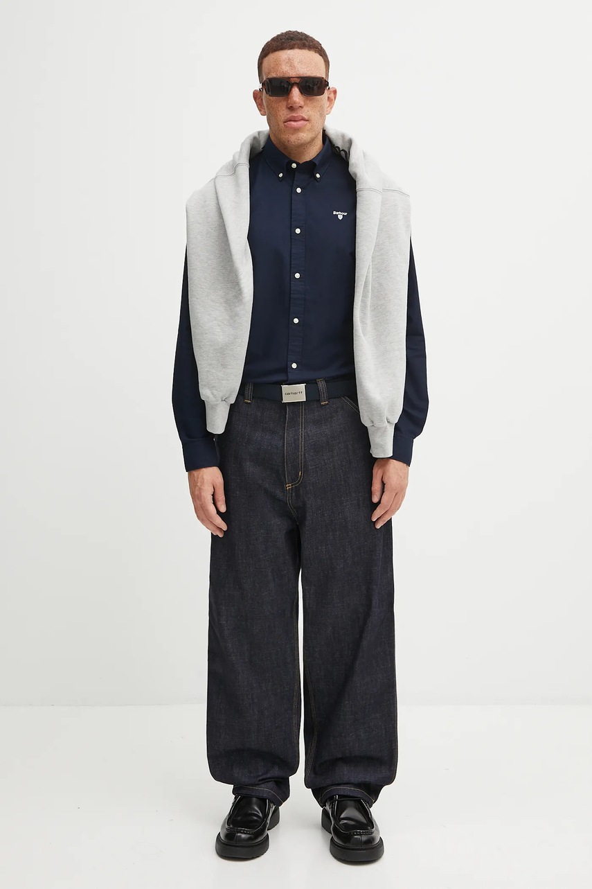 Barbour Cămașă Oxtown, bumbac, croială slim, albastru marin, guler button-down, bărbați, mărime M