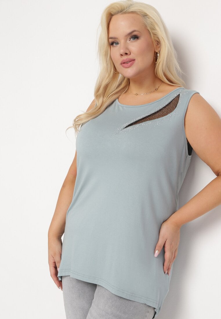 Bluză Mentă din Bumbac cu bretele, cu Plasă și Zirconii Blettia