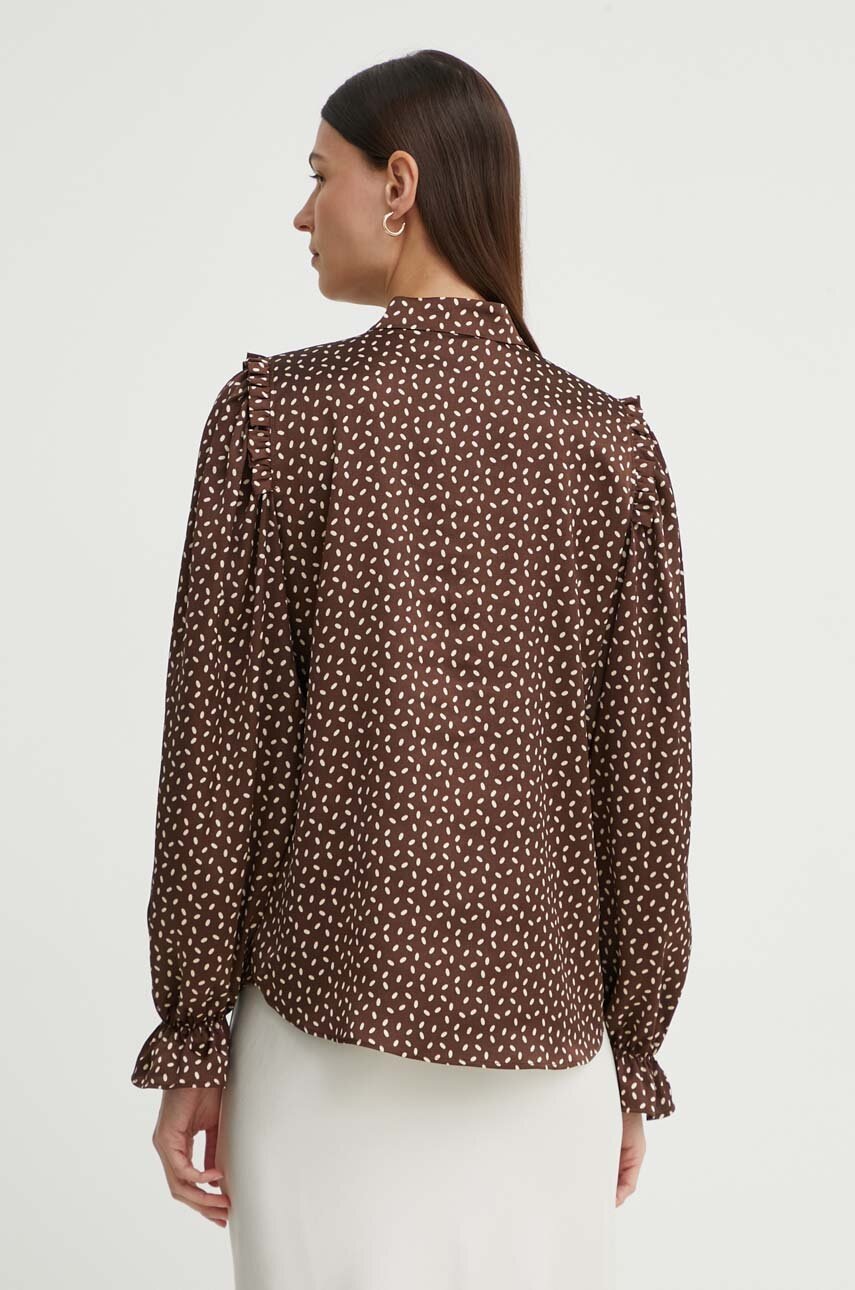 Bruuns Bazaar camasa Acacia Fria femei, culoarea maro, cu guler stand-up, regular