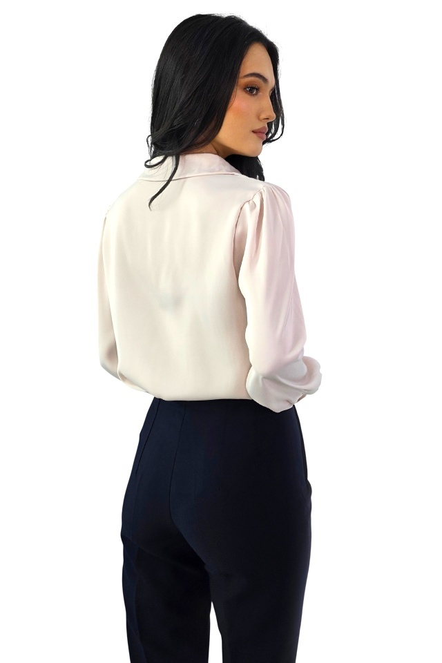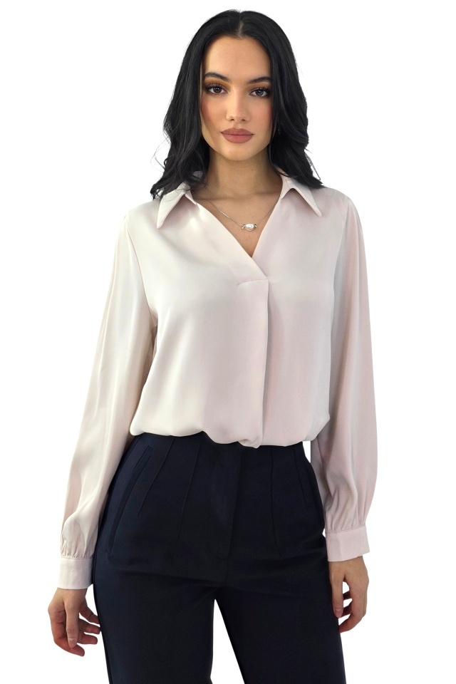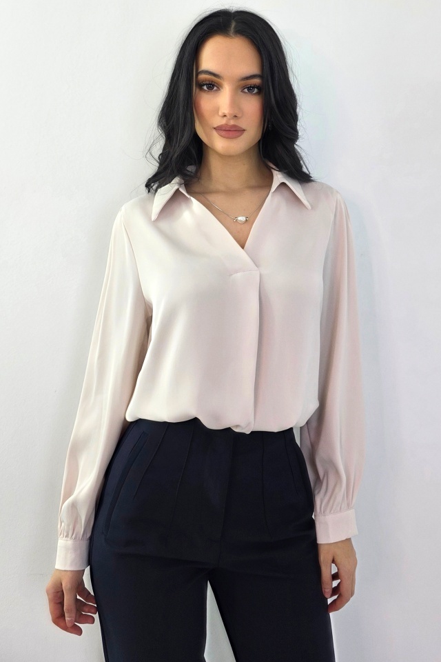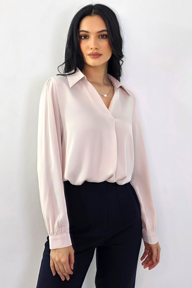 Camasa office, dama ORELIA, cu lantic detasabil si perla, Roz pudrat, Marime S/M