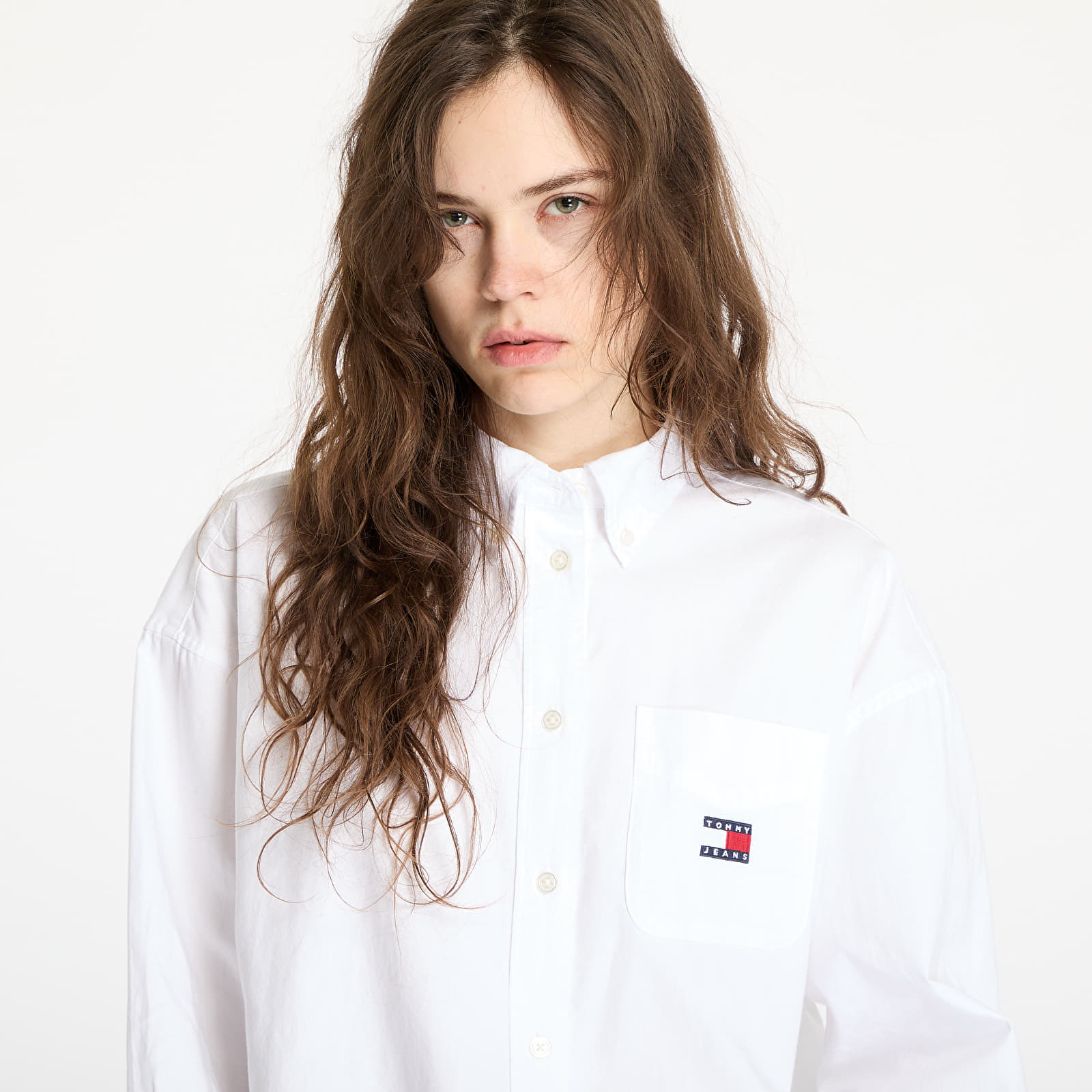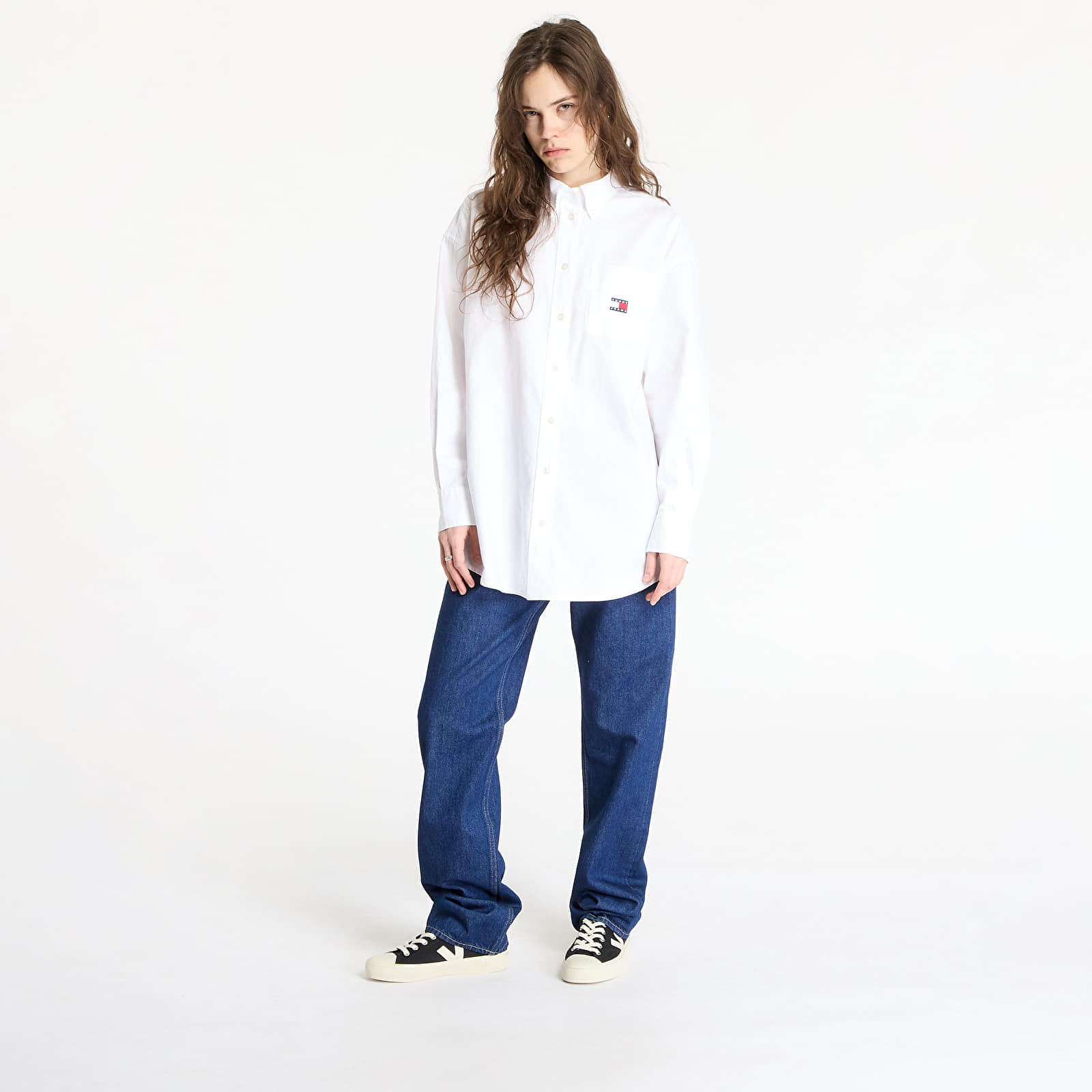 Camasa Tommy Jeans Oversized Badge Oxford Shirt White M la preț atractiv de doar 289 lei. Producător: Tommy Hilfiger Mărime: M Culoare: White