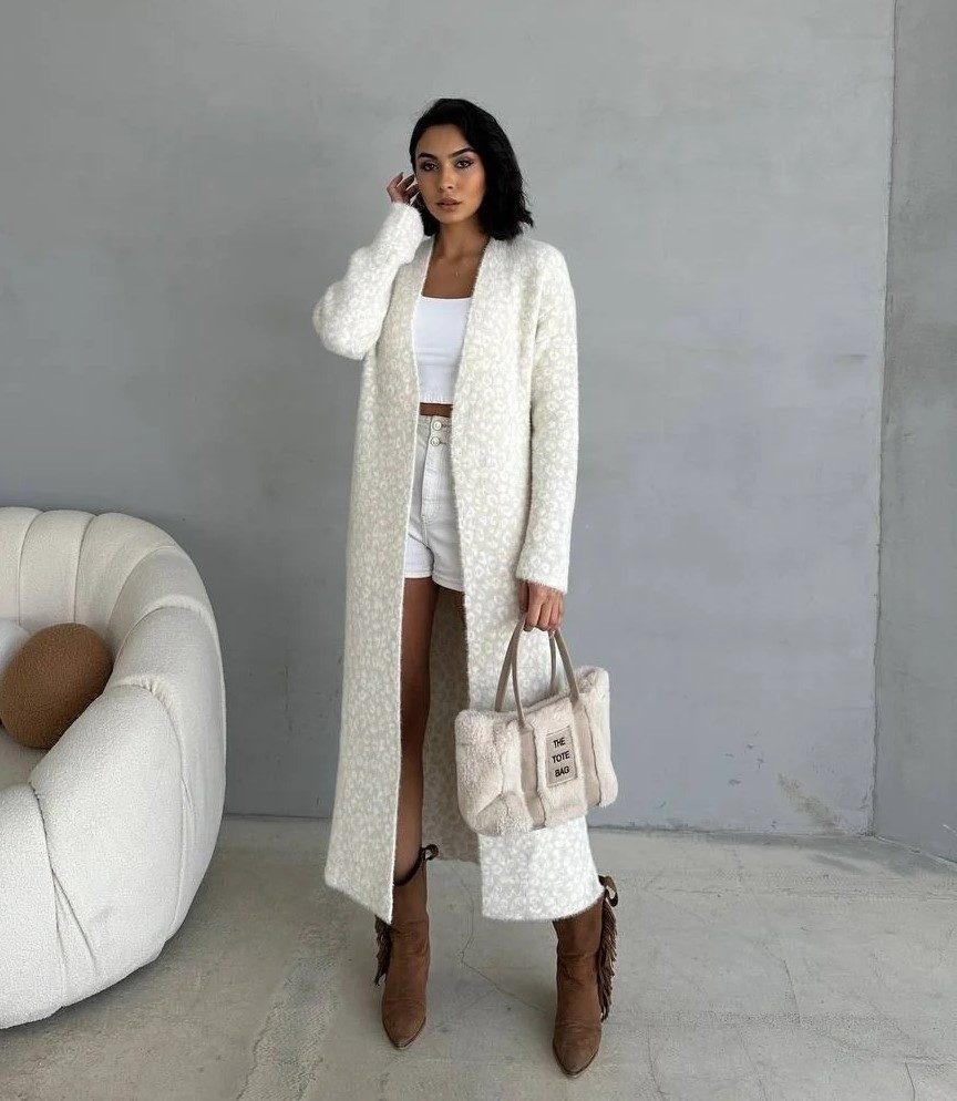 Cardiganul lung sofie, este cu mâneci lungi și un croi fluid, are un design minimalist care permite asortarea ușoară cu diferite ținute, de la casual la sofisticate.