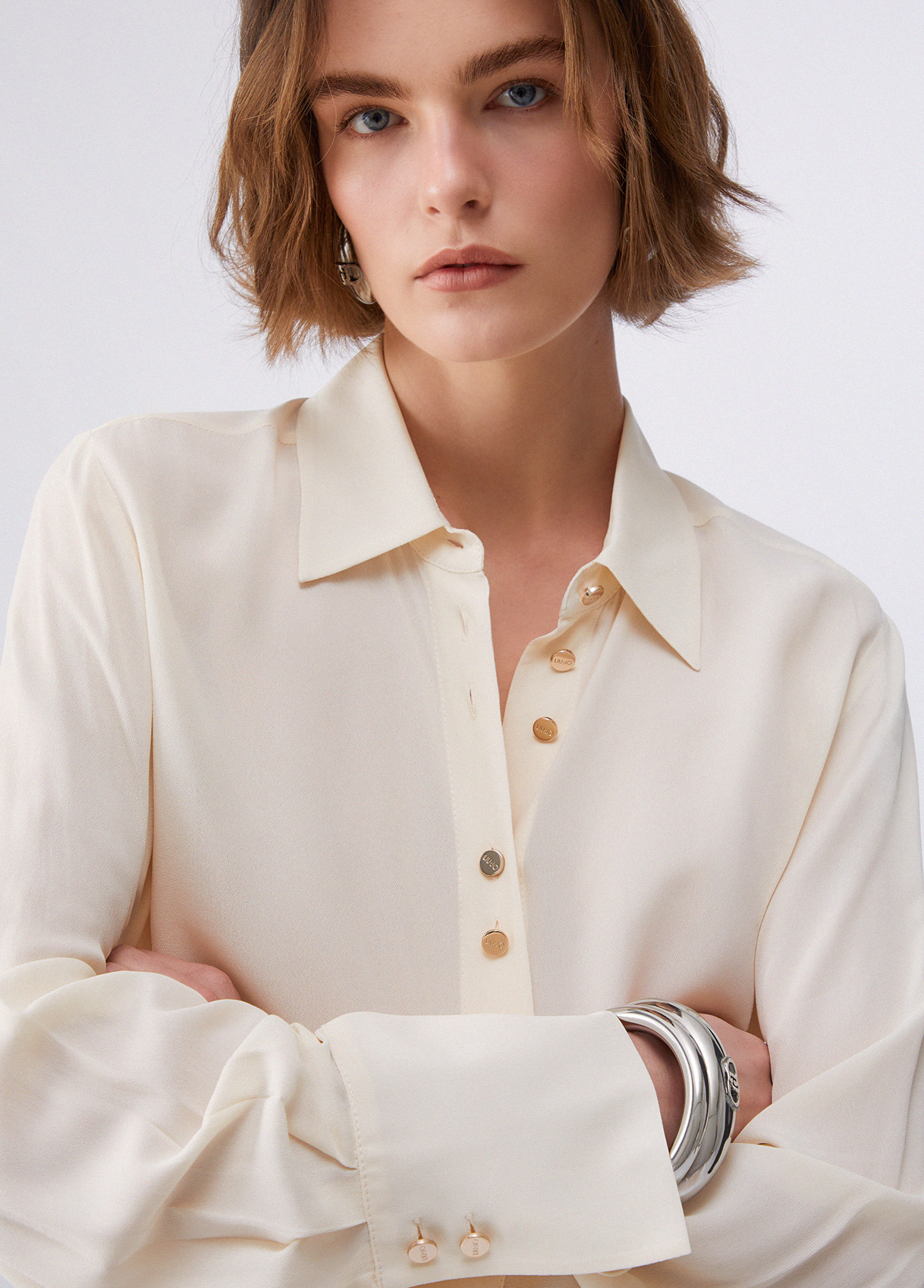 Viscose georgette shirt Elegant design with logo buttons Wide cuffs