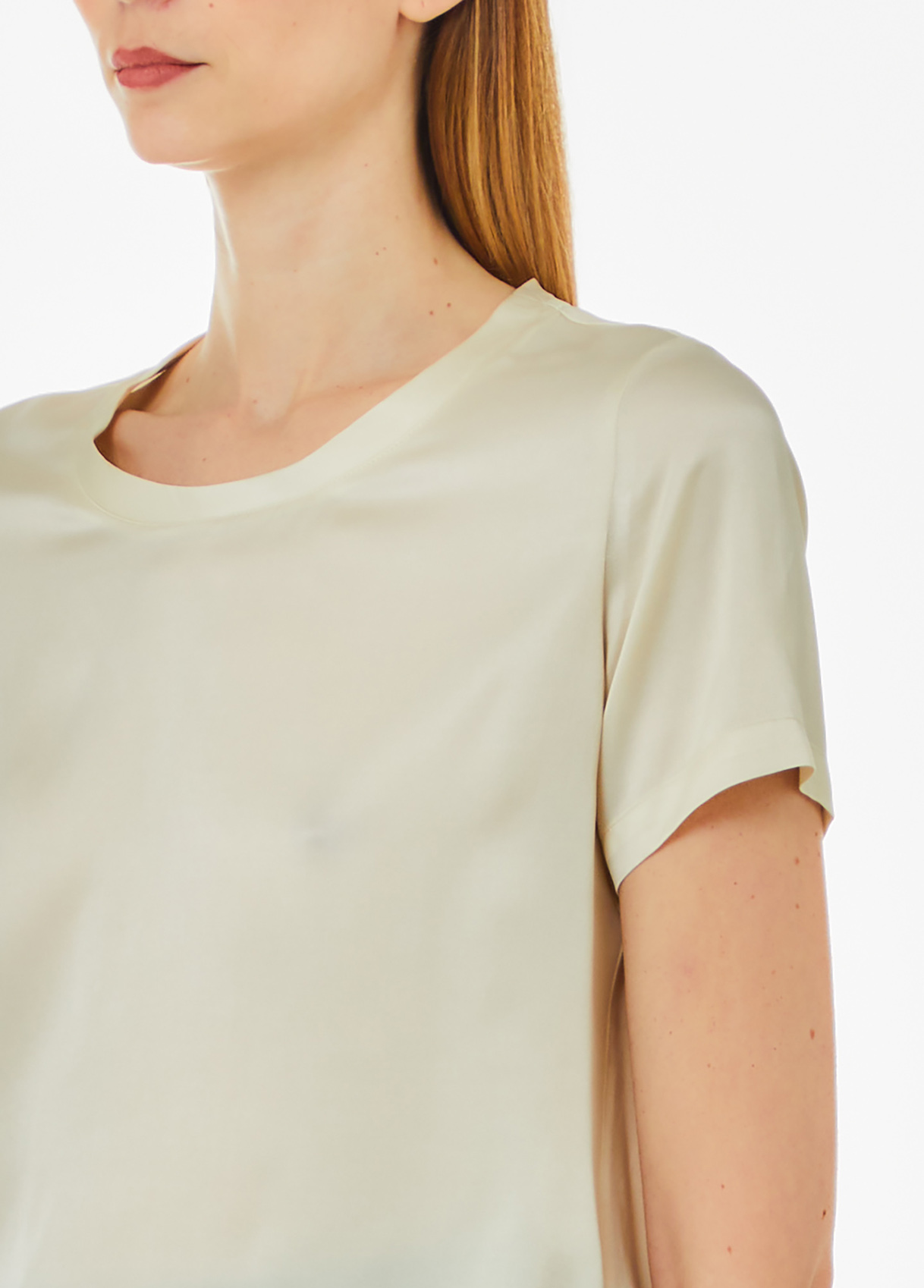 Stretch silk-blend satin T-shirt Round neck Short sleeves Metal logo on the back