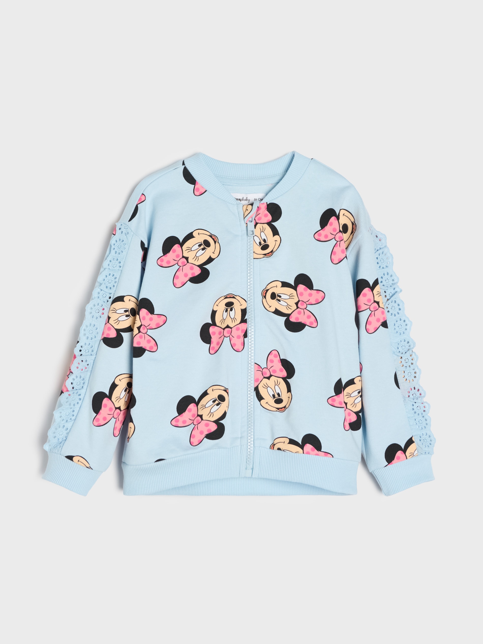 Sinsay - Bluză din bumbac cu volan brodat ajurat Minnie Mouse - albastru -