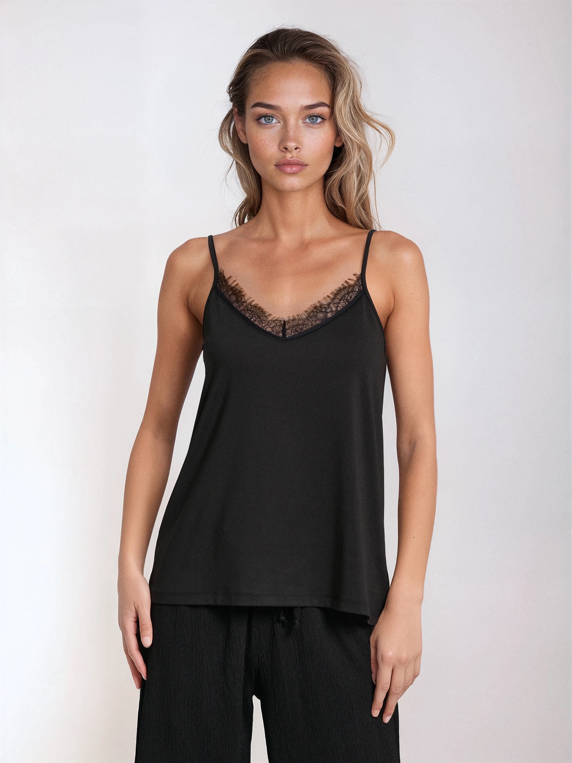 Sinsay - Bluză pe bretele cu dantelă decorativă - negru -