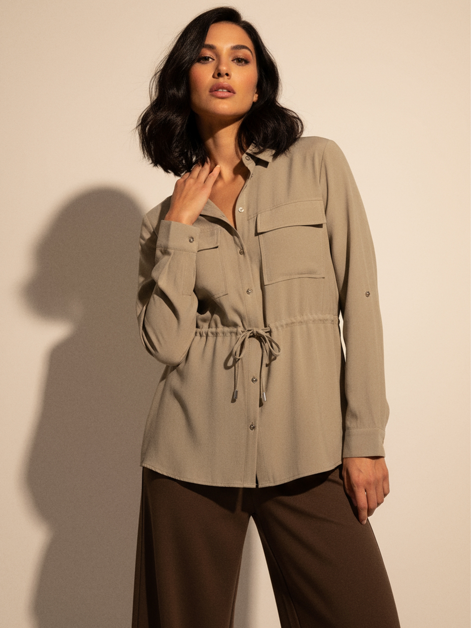 Sinsay - Cămașă cu buzunare cargo și șnur în talie - verde-închis