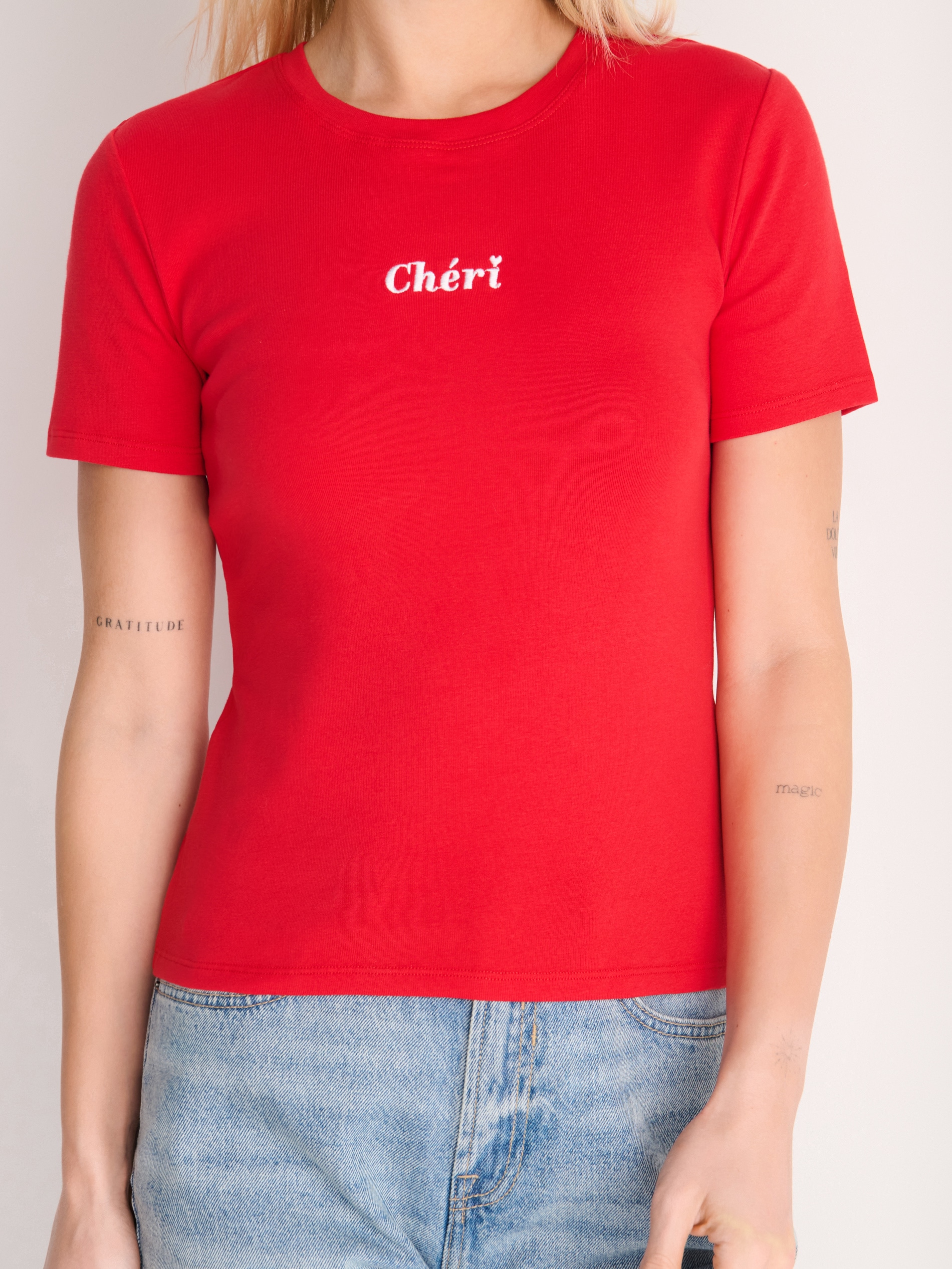 Sinsay - Tricou cu mânecă scurtă - roșu - guler rotund