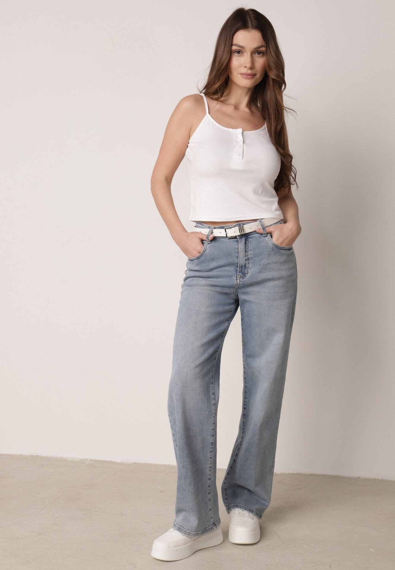 Top alb cu bretele din țesătură striată din bumbac cu nasturi Bermisa