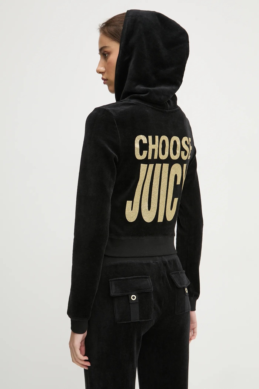 Juicy Couture Hanorac Cropped Fit Bamboo Velour Heritage, Negru, 46% bumbac / 32% bambus / 22% poliester, Colecția Primăvară 2025