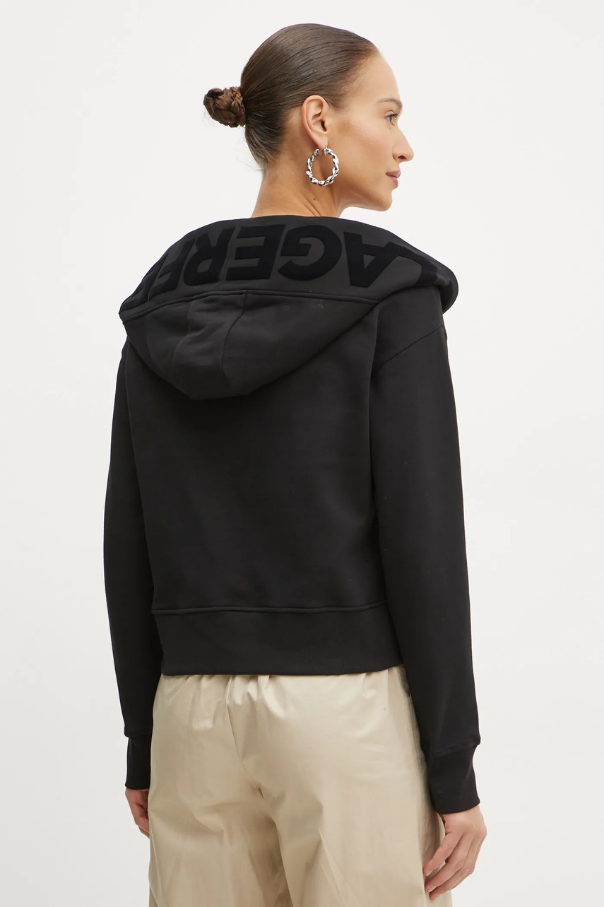 Karl Lagerfeld hanorac de bumbac femei, culoarea negru, cu glugă, cu imprimeu, A1W20064