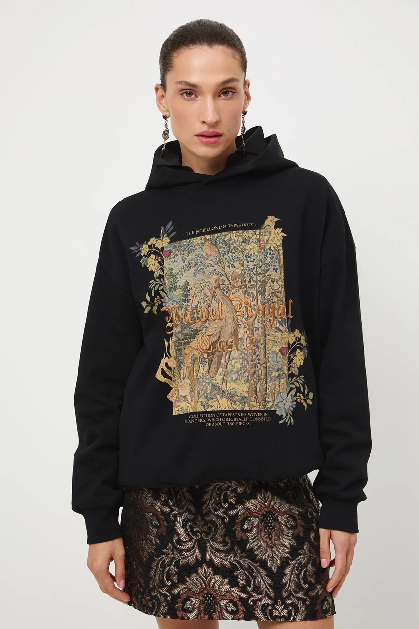 Bluza cu gluga din colecția specială Castelul Regal Wawel x Medicină. Model confectionat din țesături tricotate imprimate și brodate.