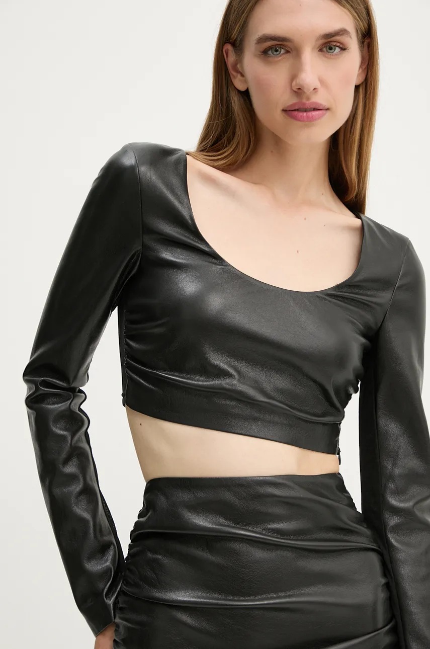 Redefinește-ți stilul cu bluzele din colecția Nanushka și lasă-te purtată de eleganța versatilă a modelului MAYLAH! Confecționată din piele ecologică Okobor™ de înaltă calitate, această bluză nu doar că arată fabulos, dar contribuie și la protejarea mediului, fiind realizată din materiale reciclate. Textura sa netedă și elasticitatea optimă îți oferă libertatea de mișcare de care ai nevoie, indiferent de ocazie. Fie că o porți la birou sau la un eveniment special, bluza MAYLAH îți va adăuga un strop de rafinament în fiecare zi. Îmbracă-te cu stil și responsabilitate – alege bluza care te reprezintă!