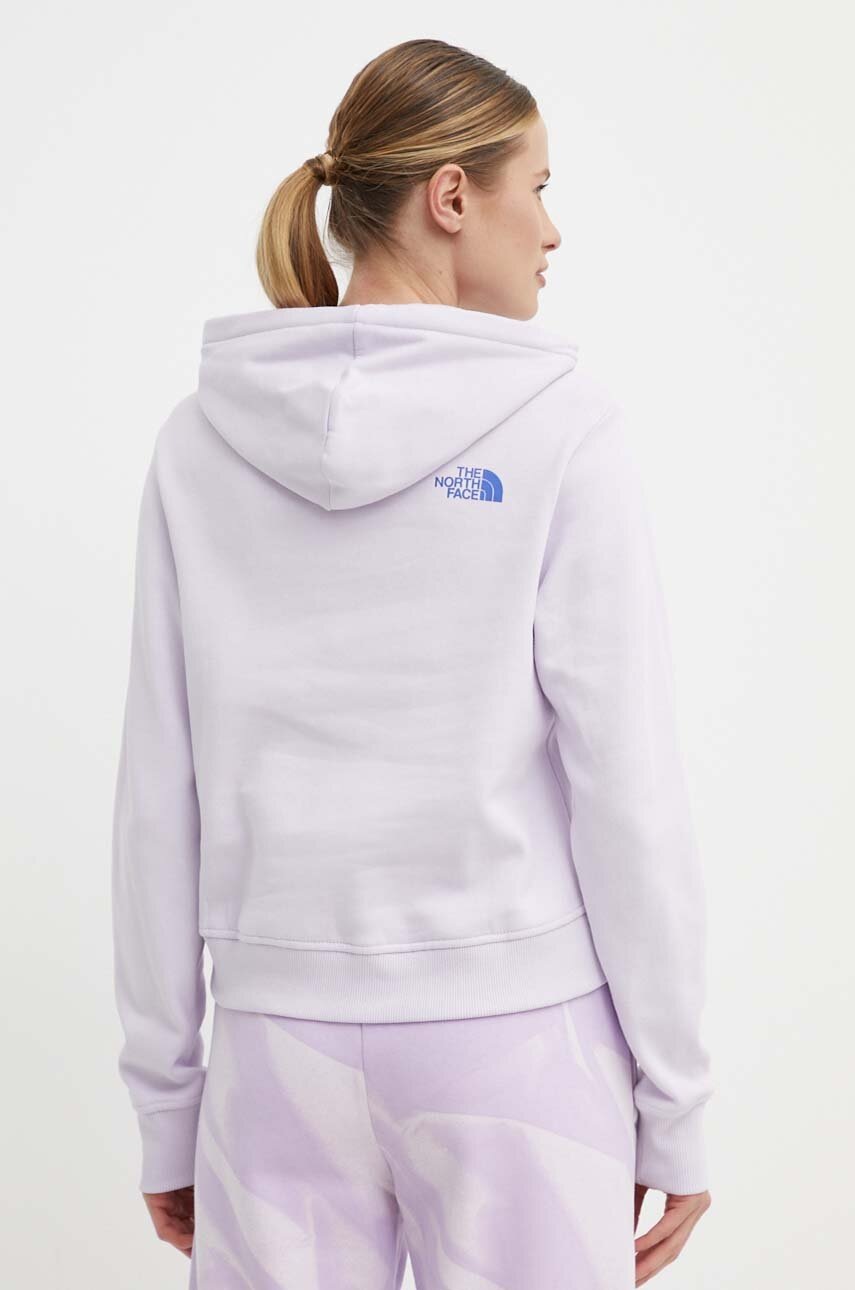 The North Face hanorac de bumbac femei, culoarea violet, cu glugă, cu imprimeu, NF0A87EXPMI1
