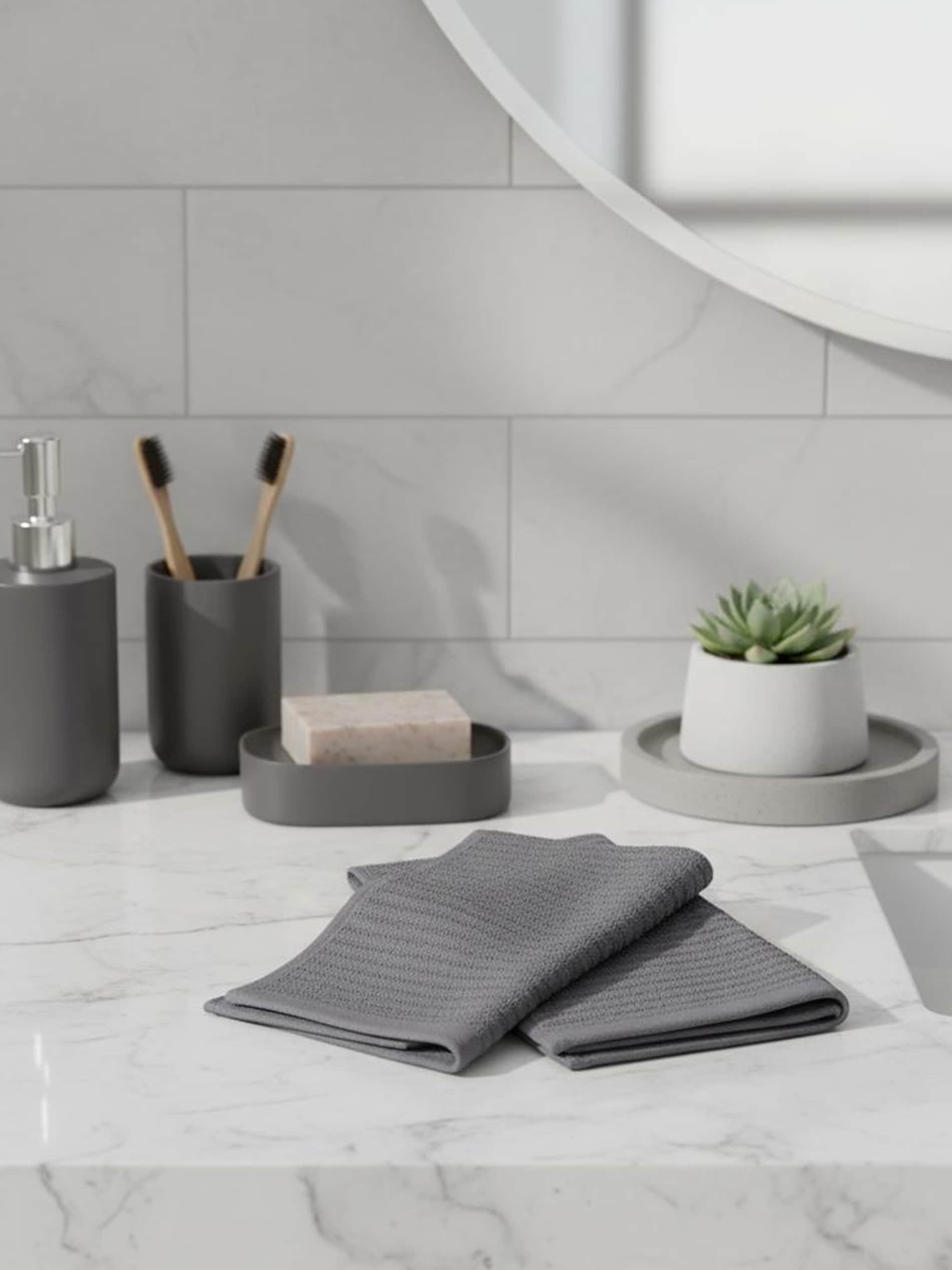 Sinsay - Set de prosoape din bumbac cu textură în relief 2 pack - gri-închis -