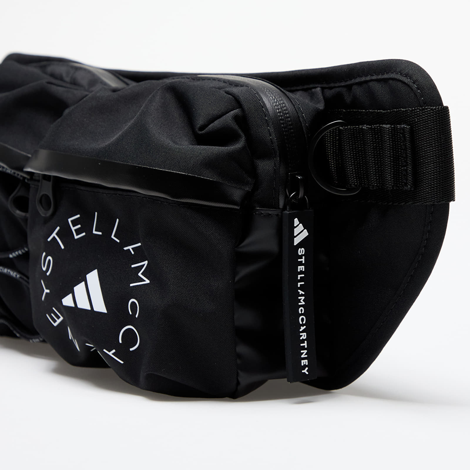ADIDAS BY STELLA MCCARTNEY Geantă sport Bum bag, negru/alb, material textil reciclat, mică, curea lungă crossbody