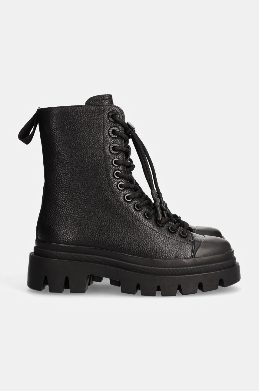 Answear Lab bocanci de piele femei, culoarea negru, cu platforma, izolare usoara