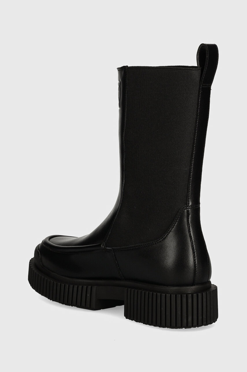 Armani Exchange ghete Chelsea de piele pentru femei, negru, cu platformă, talpă din cauciuc