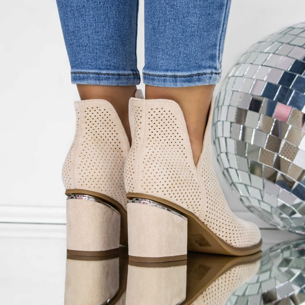 Botine Dama cu toc gros 3JF33 Bej | Mei