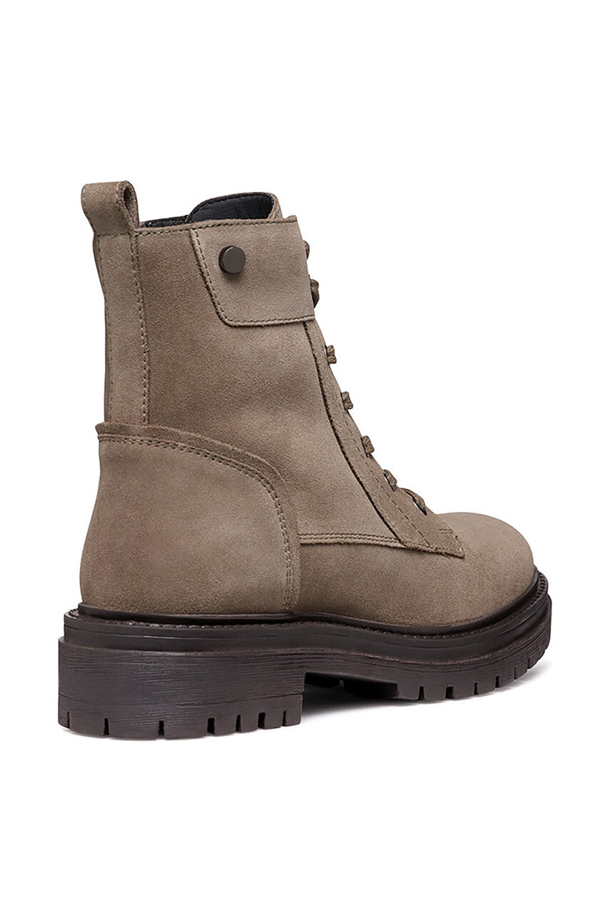 Botine din colectia Geox. Model confectionat din piele intoarsa. Un model cu talpă flexibilă din cauciuc, care este durabilă și rezistentă la deteriorare.