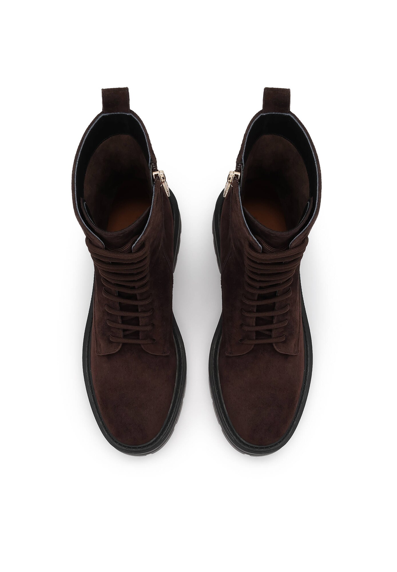 Design: Închidere cu șiret, Talpă profilată, Gaică la spate; Tip de închidere: Fermoar; Tipul de toc: Toc bloc; Material: Piele; Imprimeu: Monocrom; Material: Piele velur; Vârful încălțămintei: Vârf rotund; Detalii: Cusături ton în ton; Înălțimea tocurilor: Toc plat (0-3 cm)