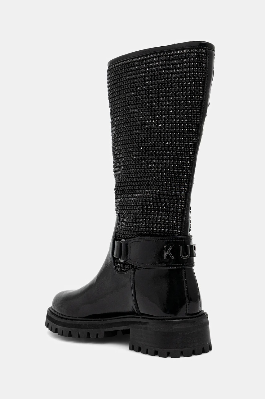 Cizme din colecția Kurt Geiger London confecționat din combinatia materialului textil cu pielea naturala. Un model cu talpă din cauciuc care este durabilă și rezistentă la deteriorare.