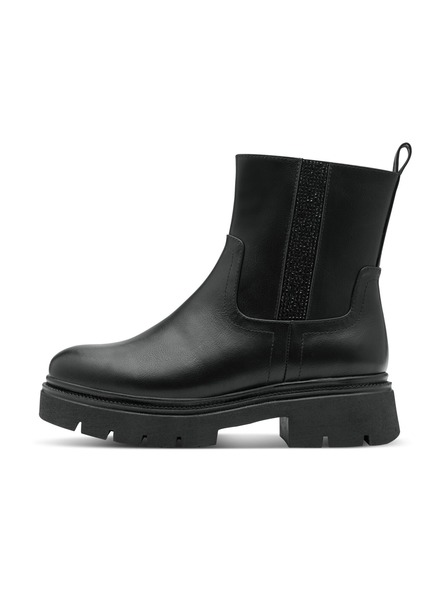 Design: Fermoar lateral, Talpă profilată, Călcâi întărit, Gaică la spate; Tip de închidere: Fermoar; Imprimeu: Monocrom; Material: Imitație de piele; Vârful încălțămintei: Vârf rotund; Detalii: Cu ștrasuri, Cusături ton în ton, Material neted, Talpă flexibilă; Înălțimea tocurilor: Toc plat (0-3 cm)