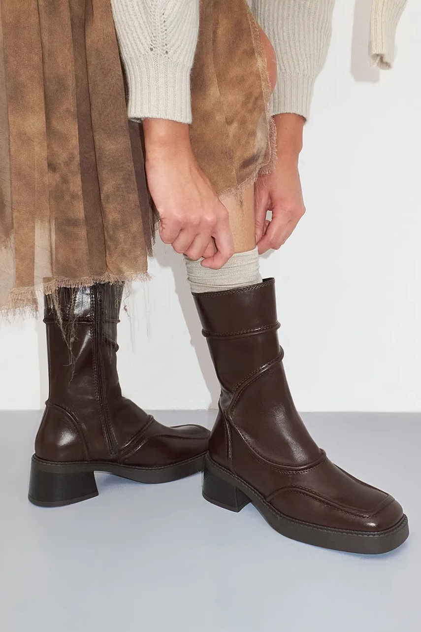 Botine din colecția Miista confecționat din piele naturală. Un model cu inserție din piele, care, datorită porilor naturali, previne frecarea, abraziunile și apariția unui miros neplăcut.