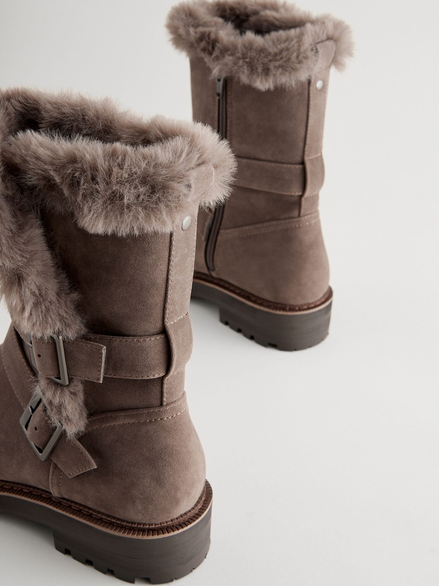 Design: Fermoar lateral; Tip de închidere: Fermoar; Imprimeu: Monocrom; Material: Imitație de piele, Blană sintetică; Vârful încălțămintei: Vârf rotund; Detalii: Aspect velur; Înălțimea tocurilor: Toc plat (0-3 cm)