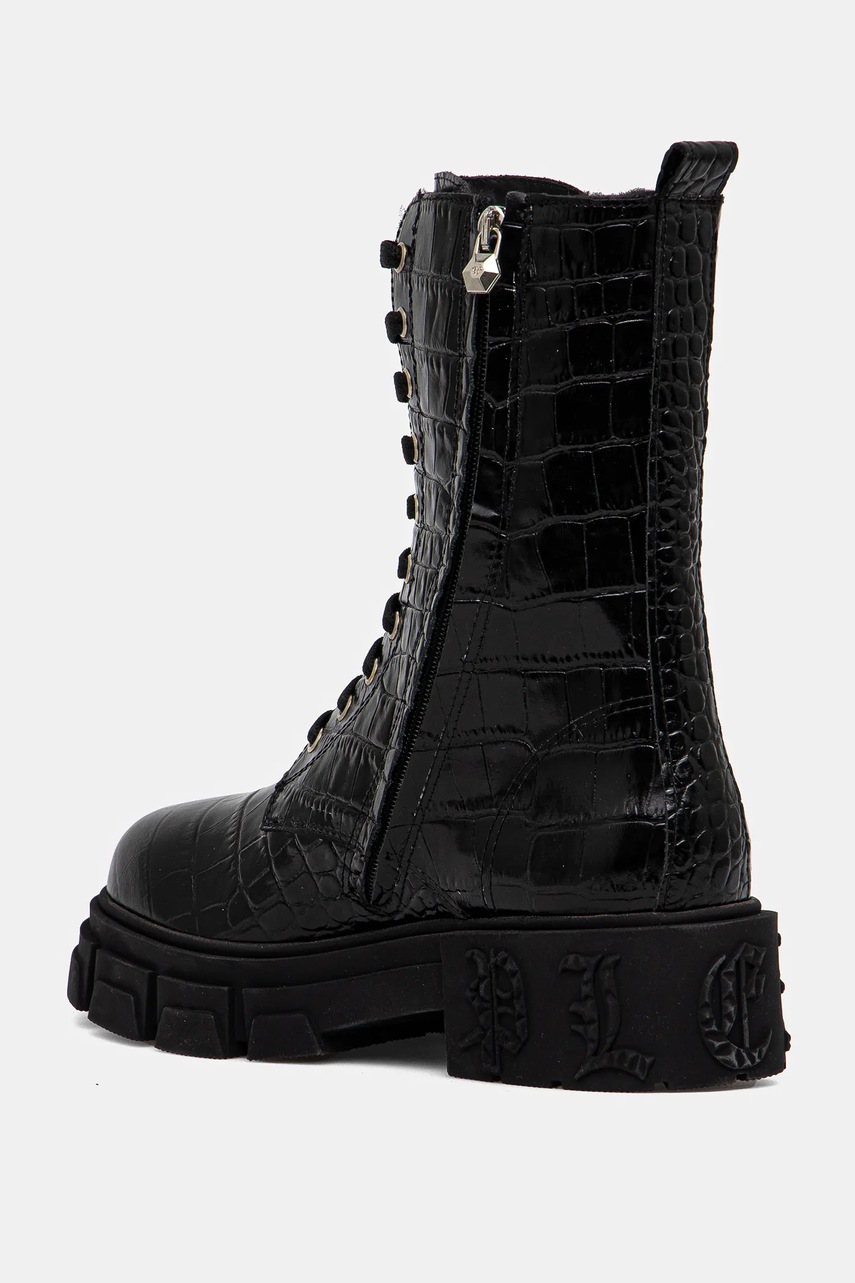 Philipp Plein cizme de piele Croco Gothic femei, culoarea negru, cu toc plat, izolat, WSE0838 PLE010N 02