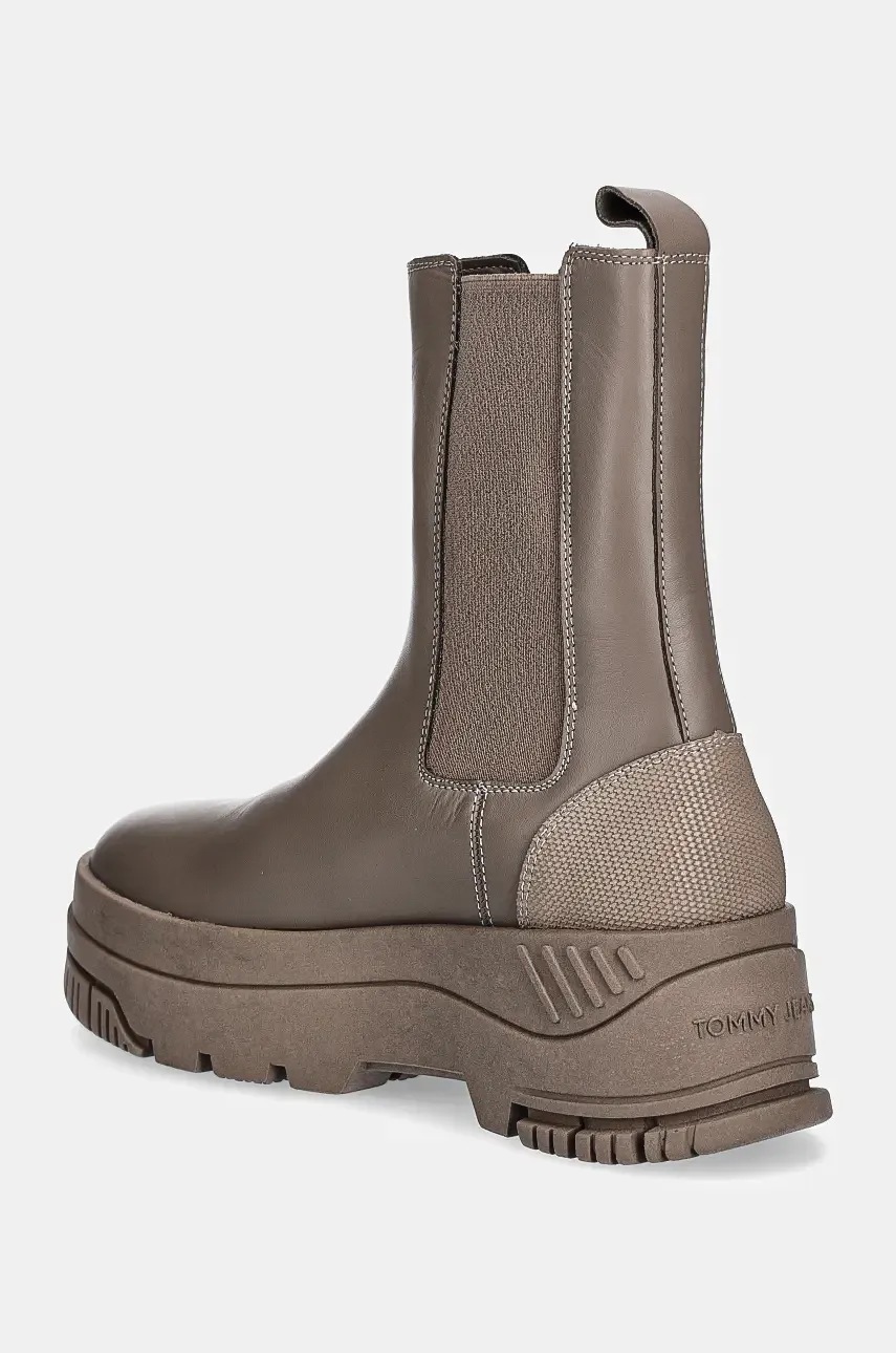 Tommy Jeans ghete chelsea de piele TJW CHELSEA FLATFORM BOOT femei, culoarea maro, cu platforma, EN0EN02597