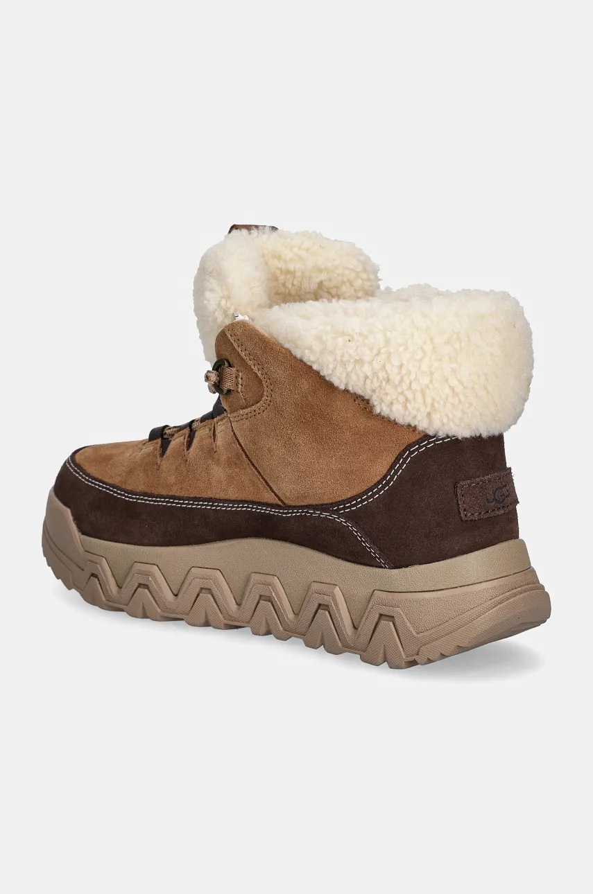 Botine din colecția UGG confecționat din combinatia materialului textil cu pielea intoarsa. Un model cu talpă din cauciuc care este durabilă și rezistentă la deteriorare.