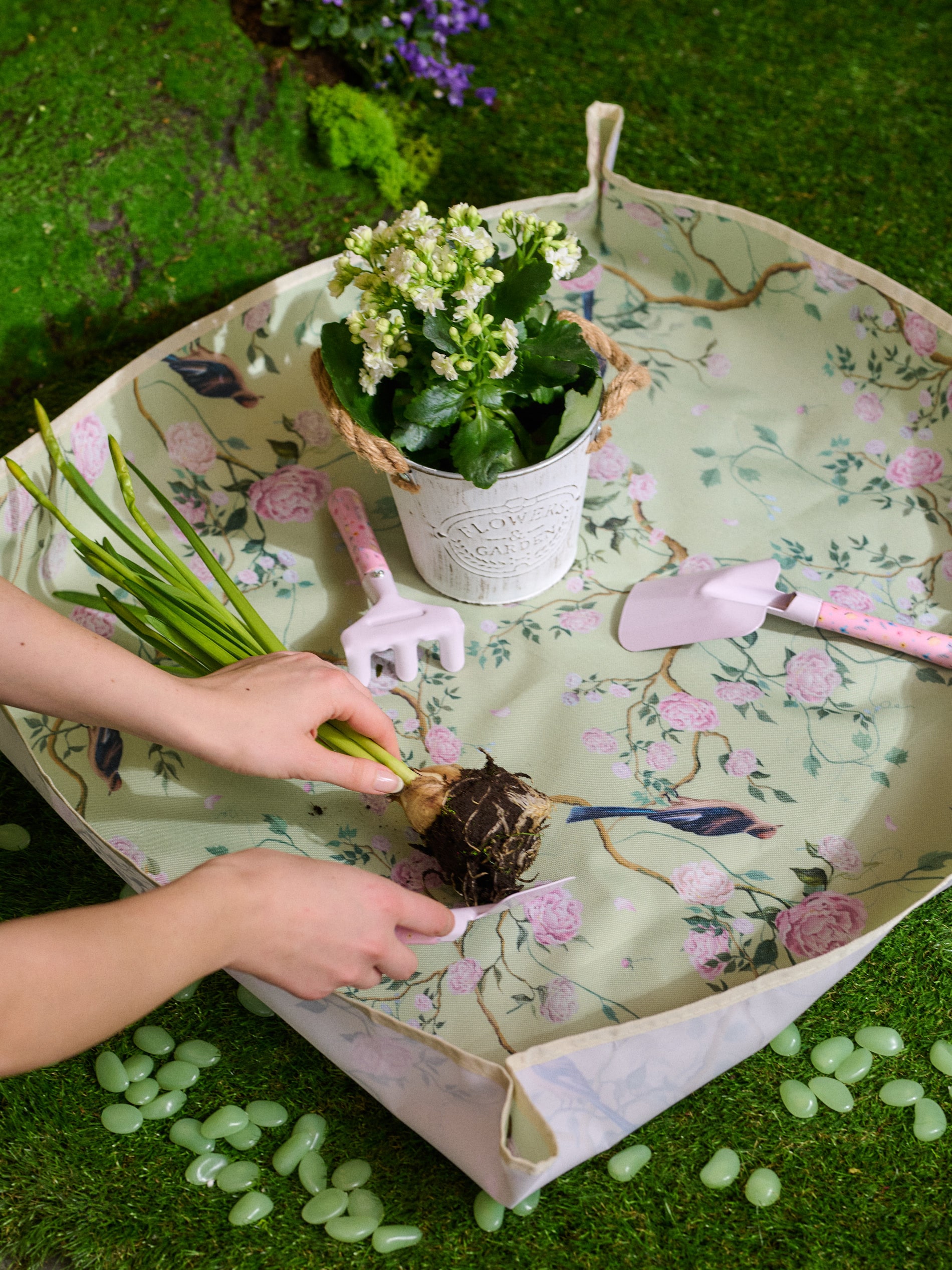Sinsay - Covoraș de grădină cu motiv floral - verde-pal -