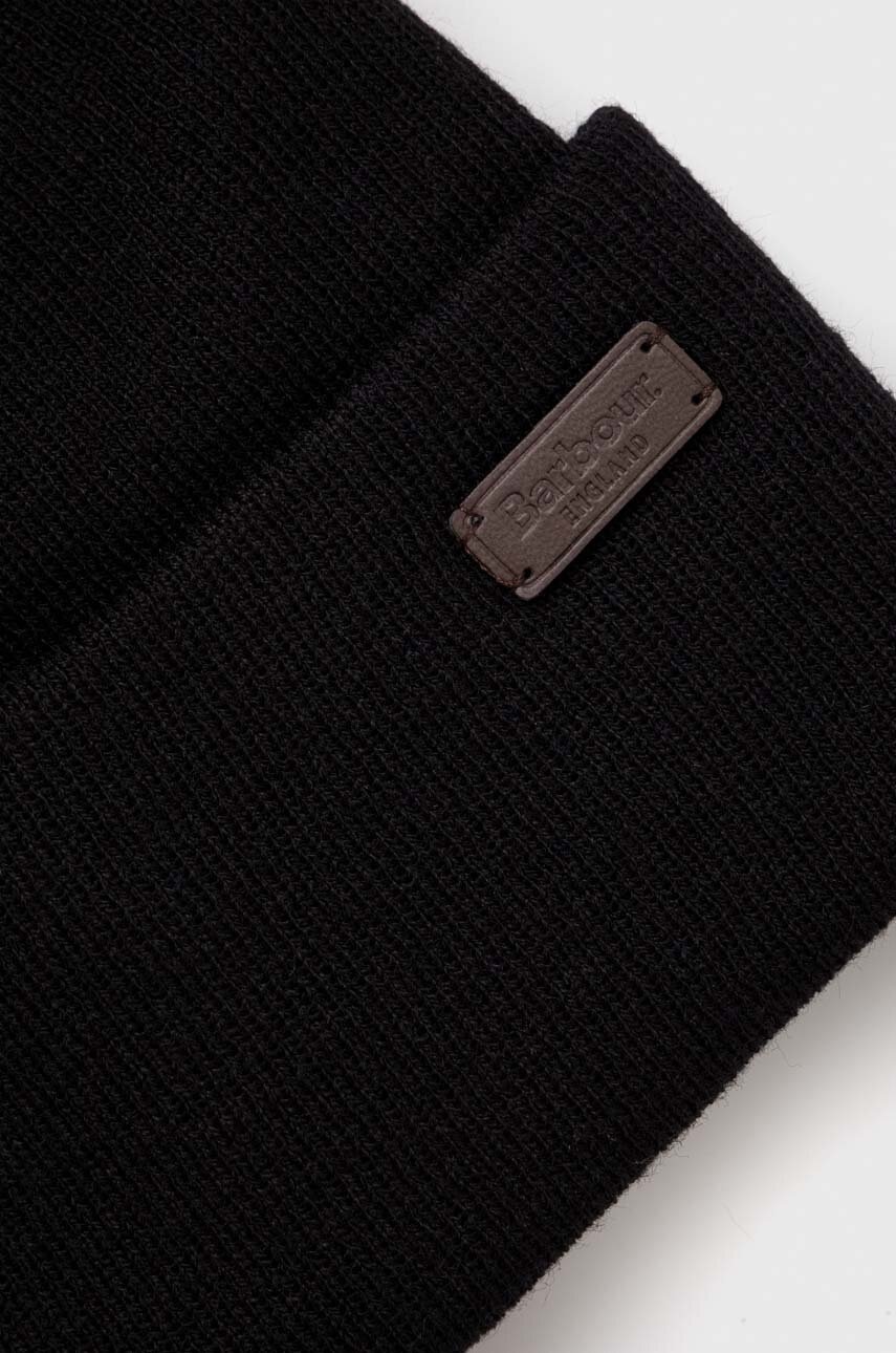 Barbour caciula din tricot gros, culoare neagra, cu pliere in partea de jos, partial din poliester reciclat