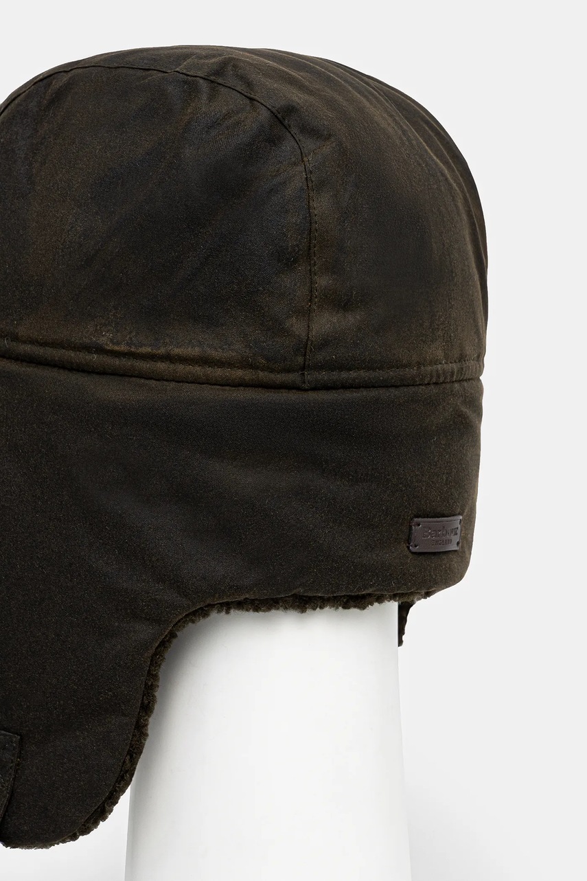 Barbour Căciulă din bumbac cerat Morar Wax, maro, model MHA0710, căptușită, reglabilă, cu profil pentru urechi