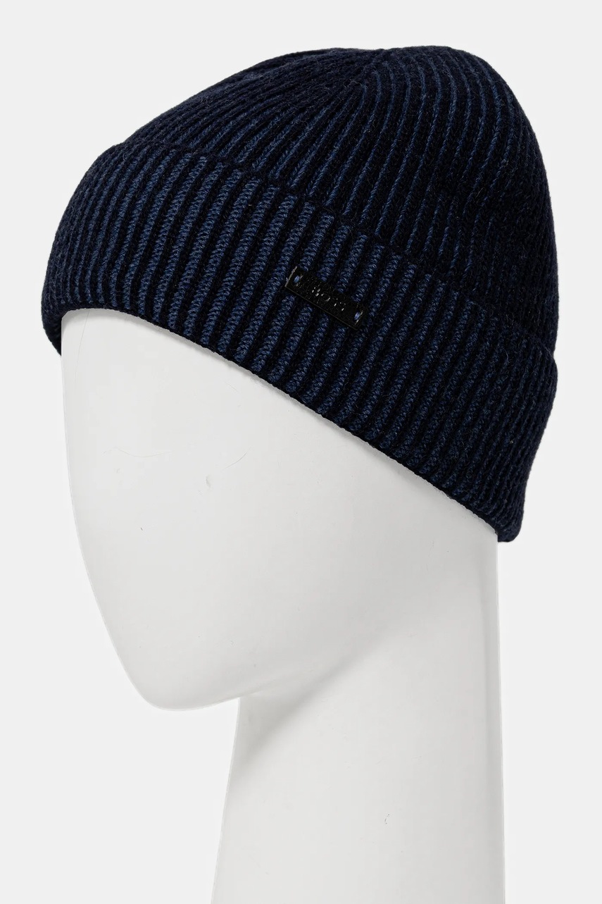 Căciulă și fular din colecția BOSS. Model confecționat din tricot cu nervuri.