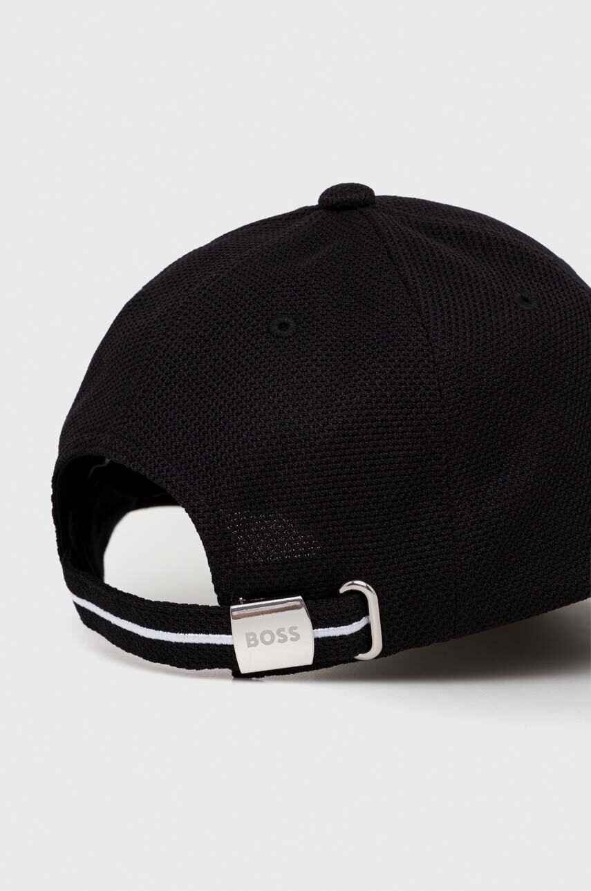 BOSS Șapcă de baseball, negru/alb, textil, cozoroc curbat, imprimeu monocrom, logo brodat, reglabil pe lățime