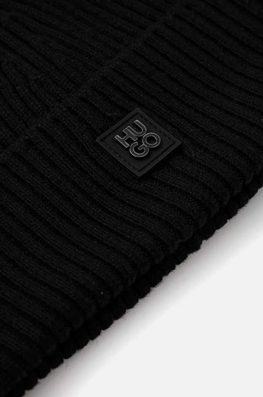 HUGO caciula de lana culoarea negru, de lana, din tesatura neteda, 50527250