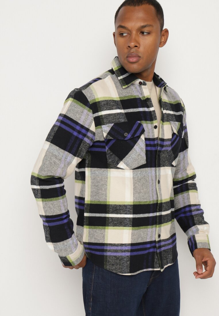 Cămașă bej din bumbac în carouri ornată cu nasturi Zinniritta