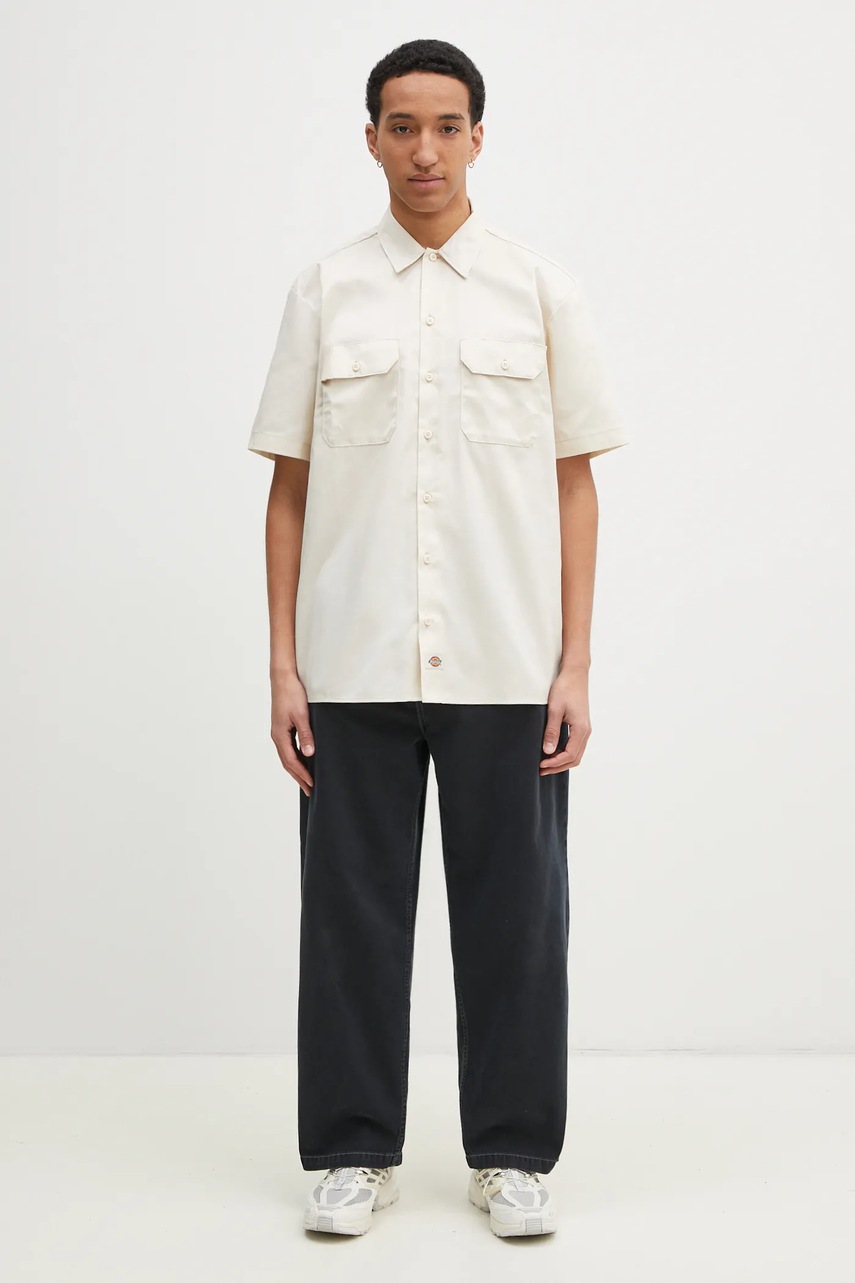 Dickies camasa barbati bej, guler Kent clasic, croiala regular, maneca scurta, marimea L