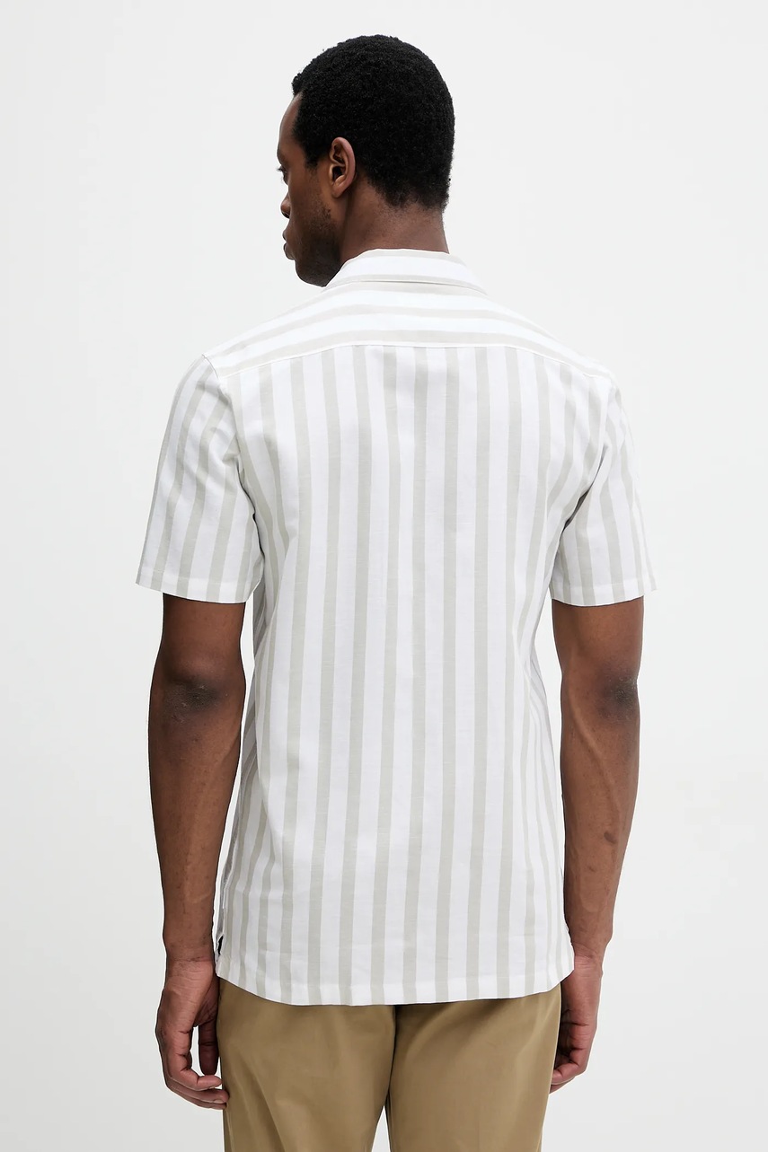 Lindbergh camasa din amestec de in culoarea verde, cu guler clasic, regular