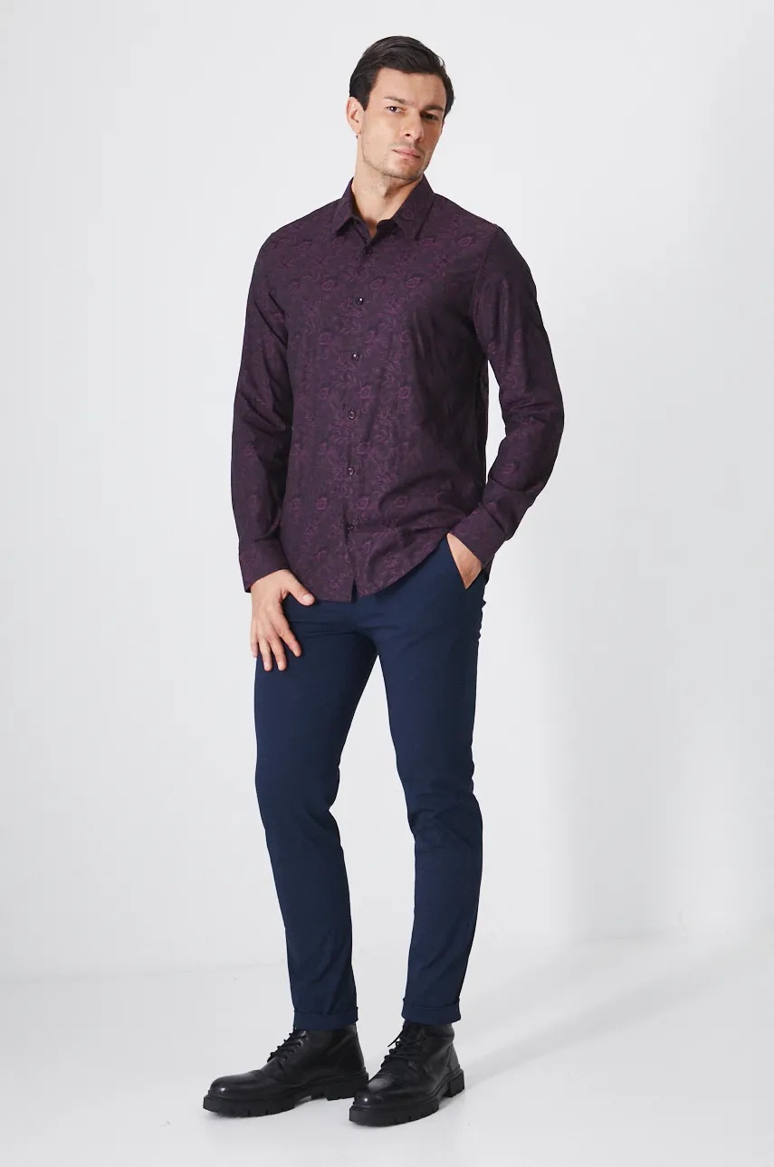 Medicine camasa din bumbac barbati, culoarea violet, cu guler clasic, regular
