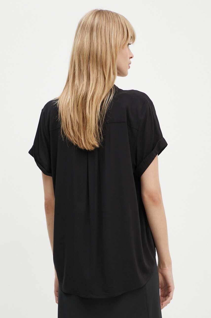 Samsoe Samsoe cămașă femei negru, guler clasic, regular, LENZING ECOVERO, mărimea S