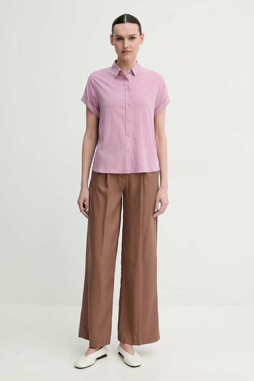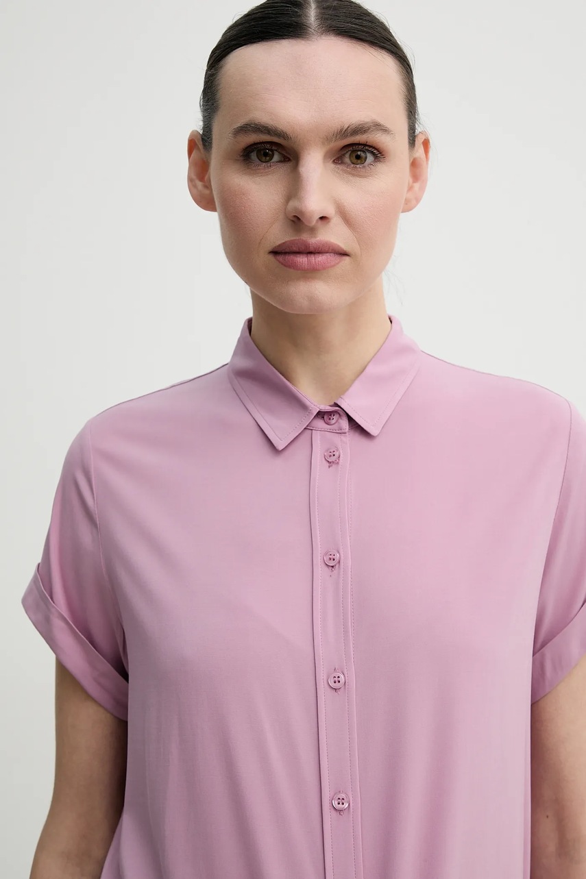 Samsoe Samsoe cămașă pentru femei violet, guler clasic, croială regular, LENZING ECOVERO, mărimea S