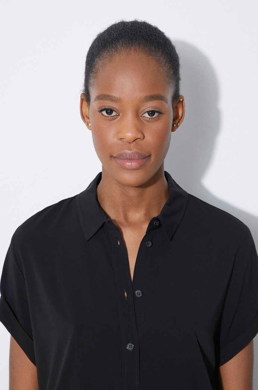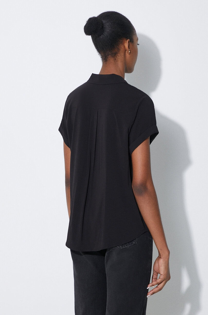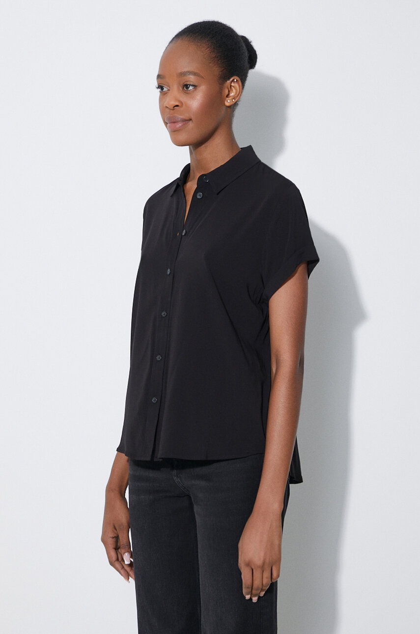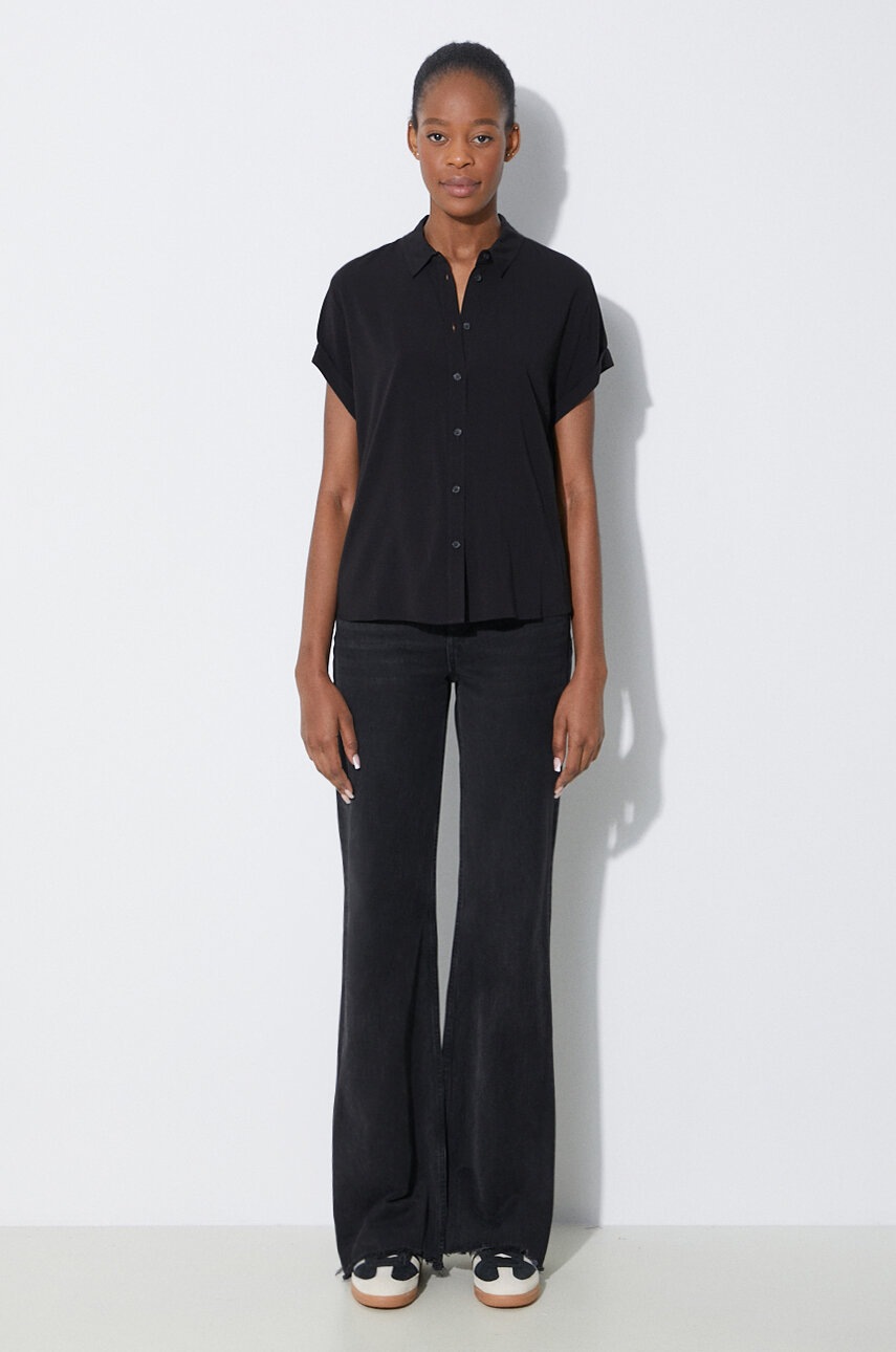 Samsoe Samsoe cămașă femei negru, guler clasic, regular, LENZING ECOVERO, mărimea S